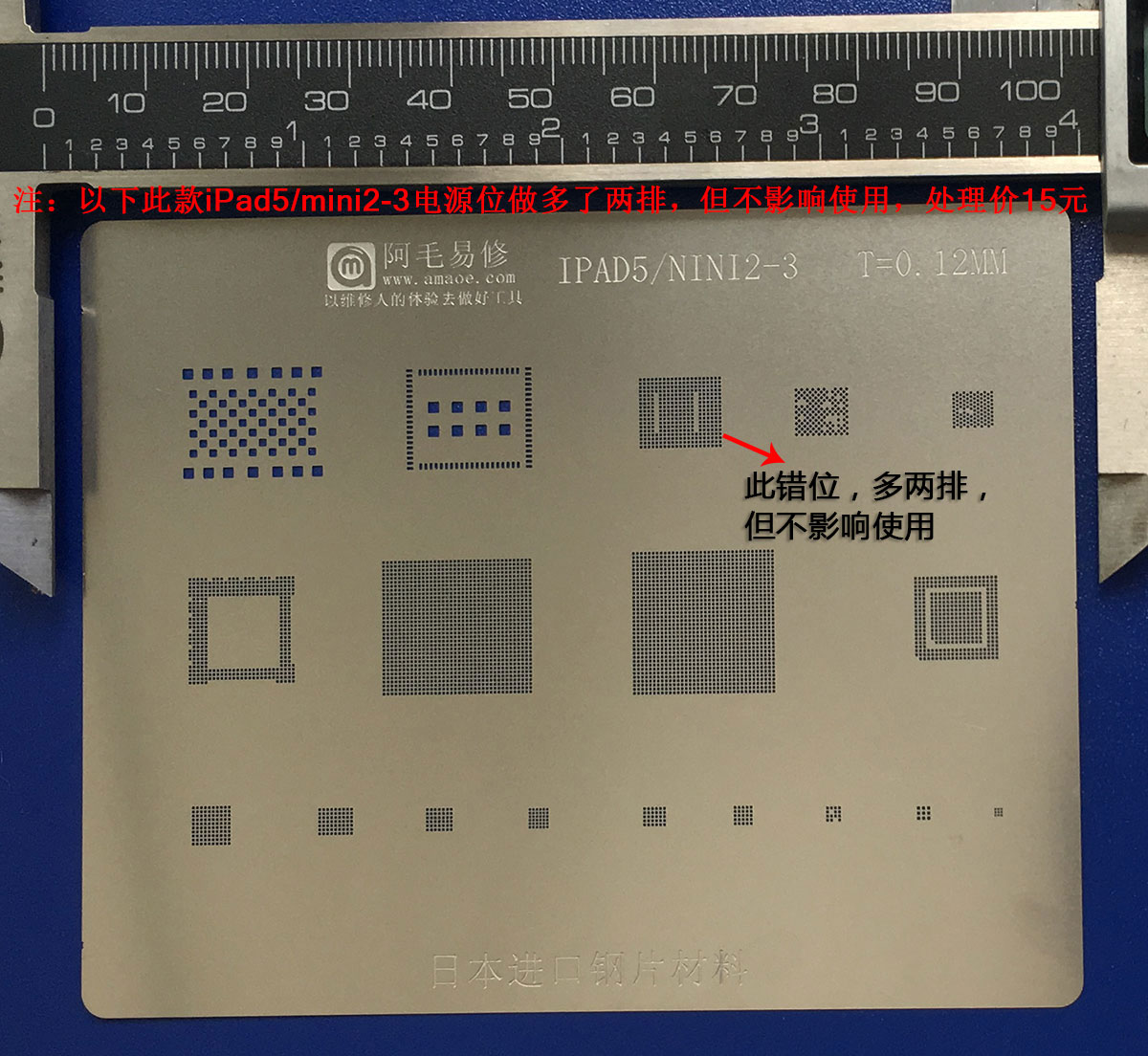 注:以下此款iPad5/mini2-3电源位做多了两排,但不影响使用,处理价15元。
