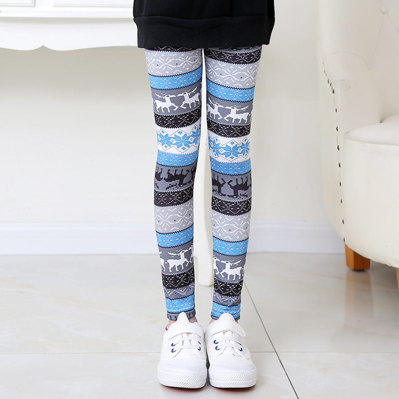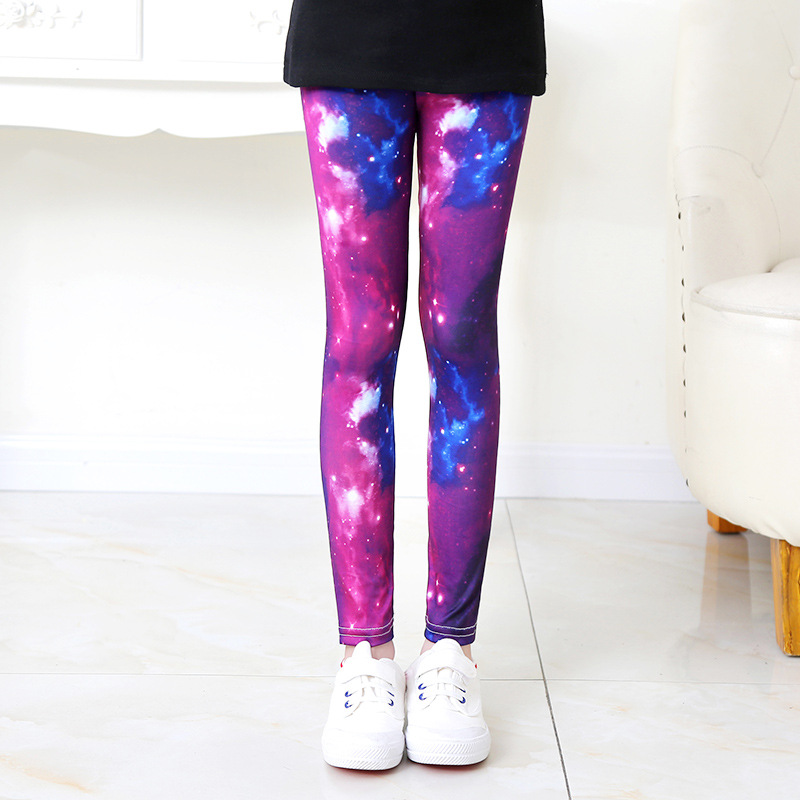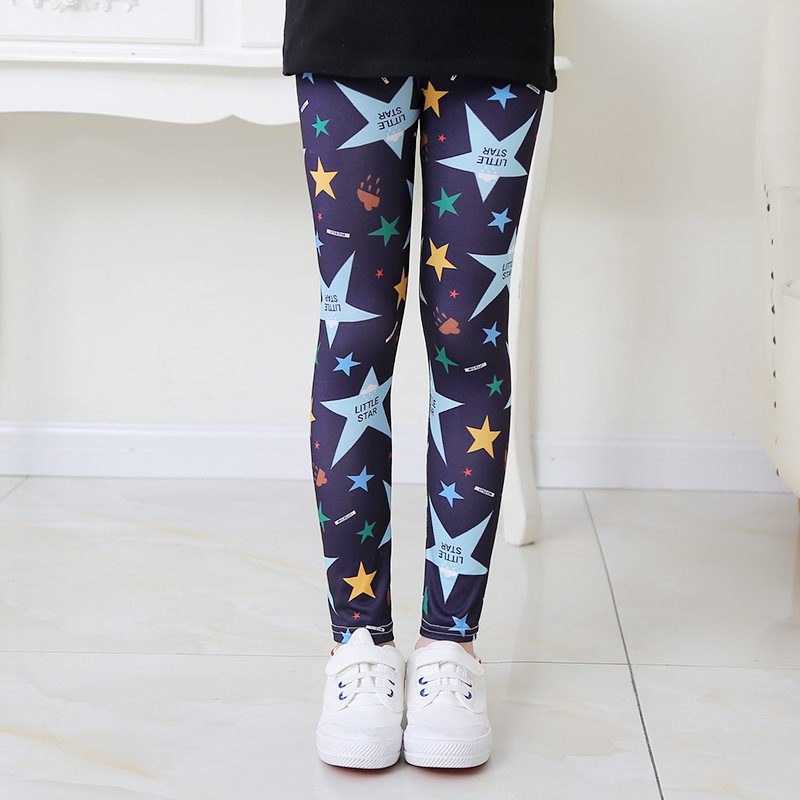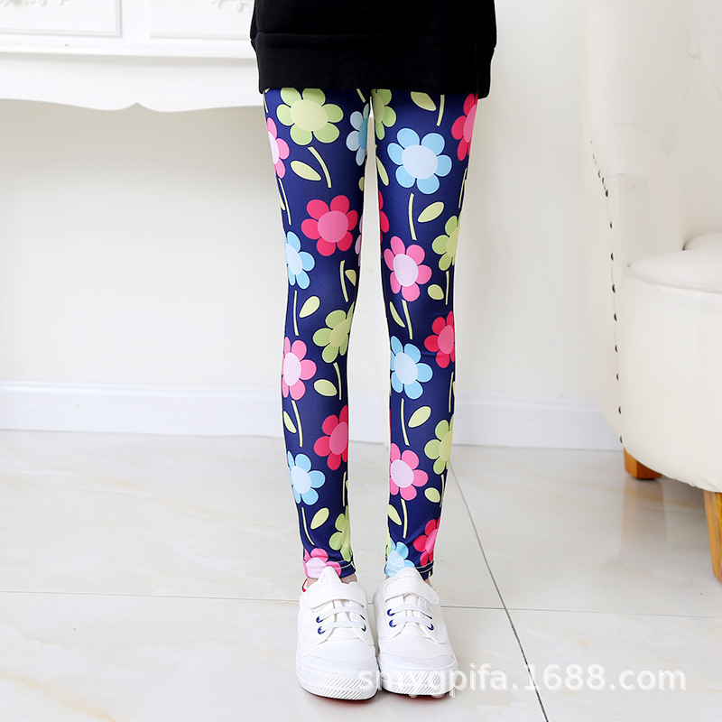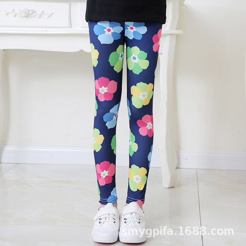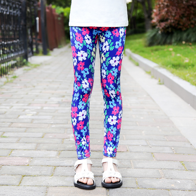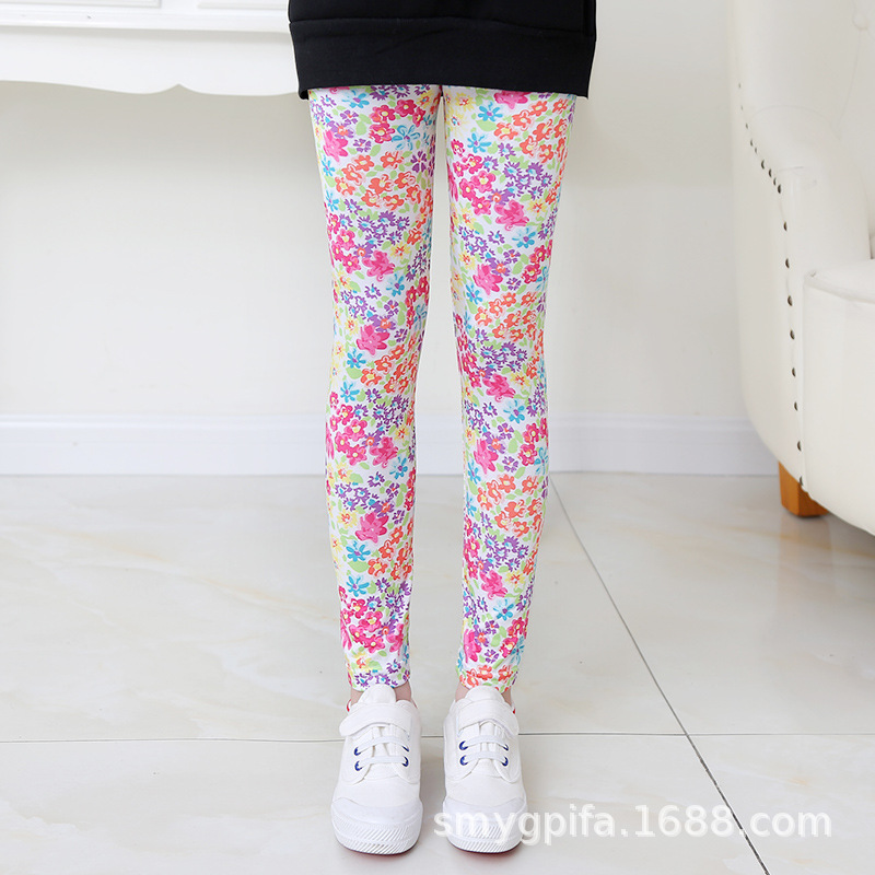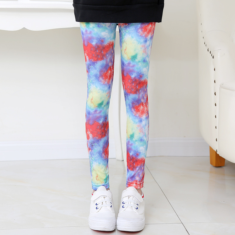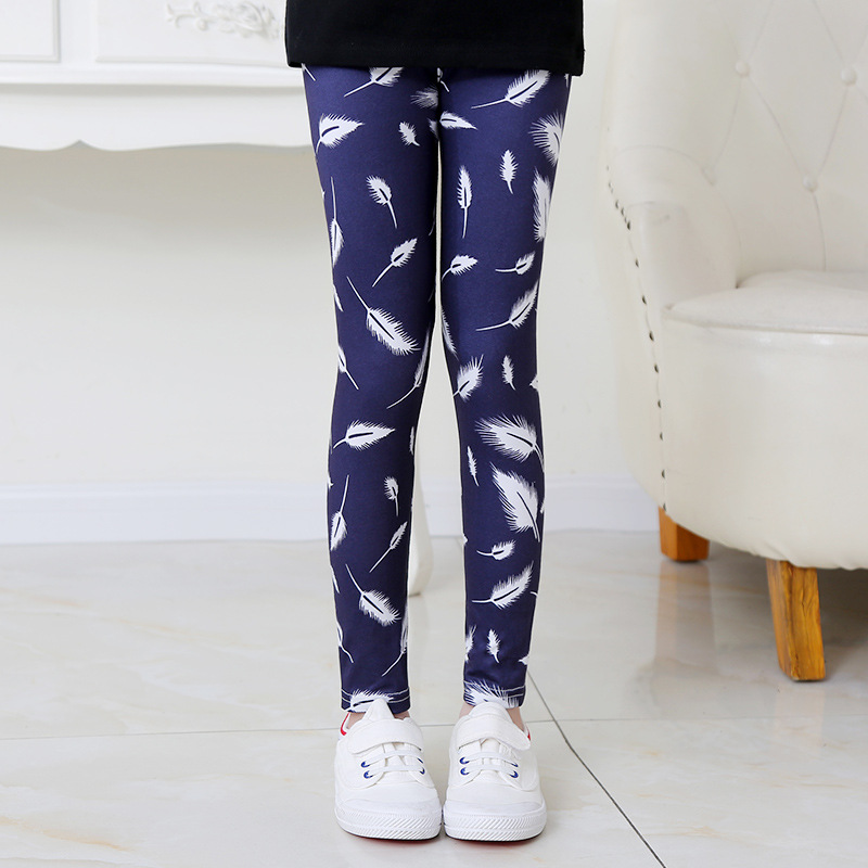 소녀를위한 새로운 봄과 가을 얇은 레깅스 밀크 실크 스트레치 프린트 바지 크로스 미러 용 대형 어린이 바지스토어 가기