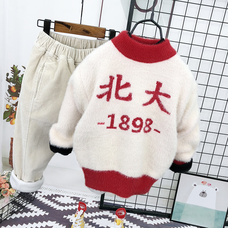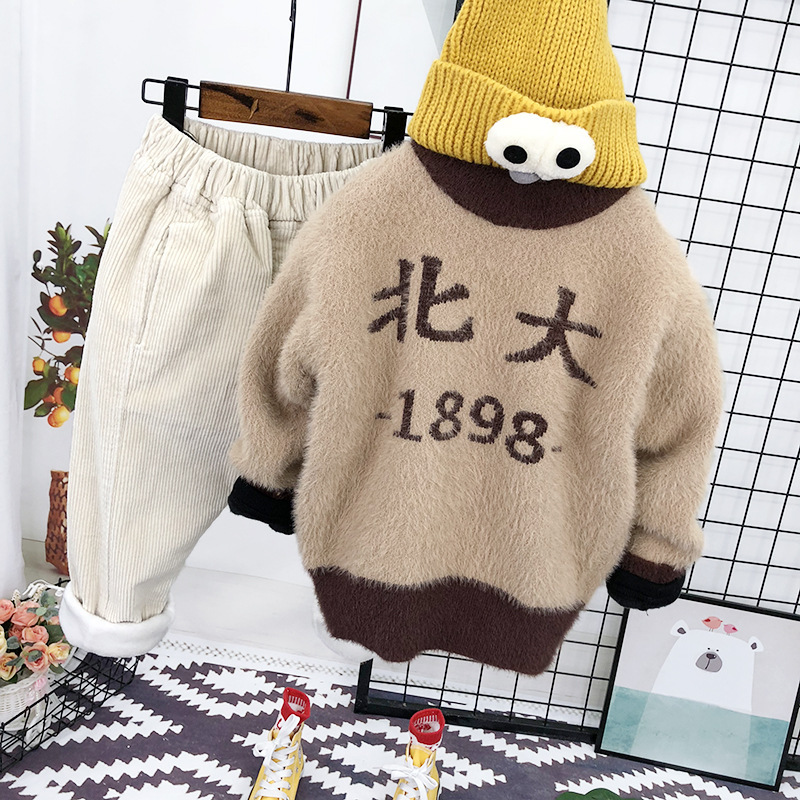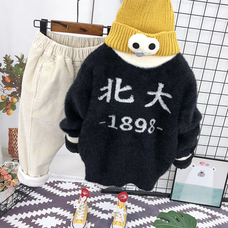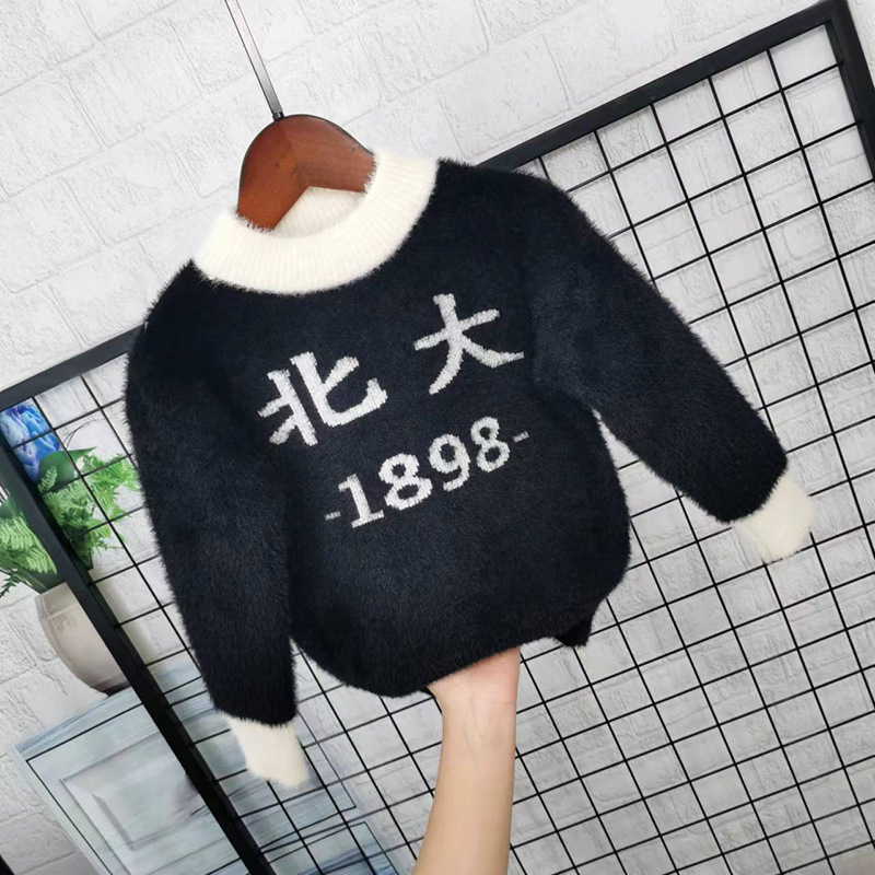남아용 2025 겨울 스웨터 신상 스타일리시한 라운드넥 스웨터 겨울 의류 어린이용 밍크 벨벳 풀오버스토어 가기