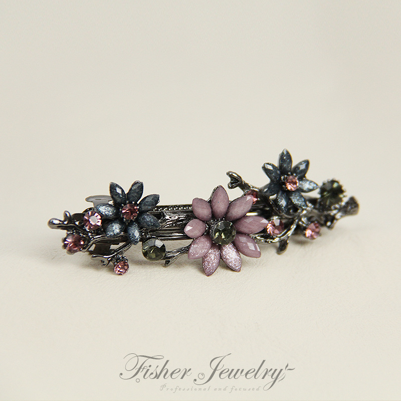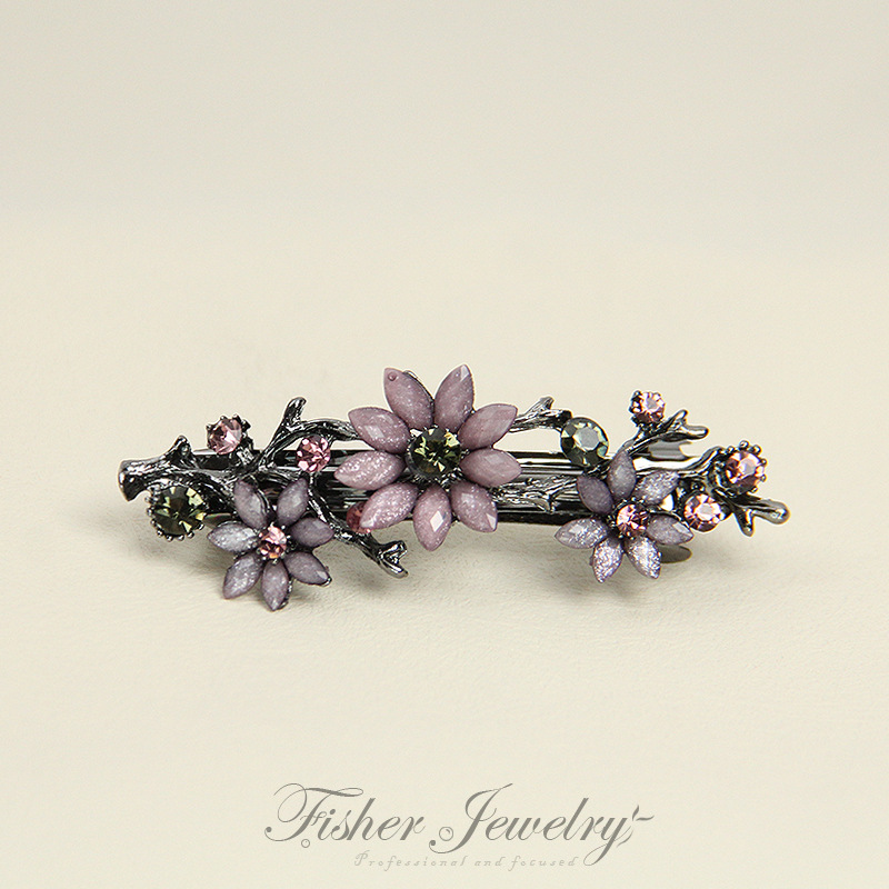 • 그레이 퍼플-프리 핸드 플라워 스프링 클립