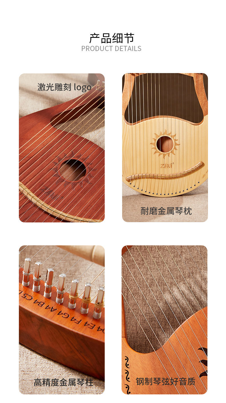 Zani Laiya 19 톤 미니 하프 16 톤 거문고 초보자 10 톤 Lya 악기 크로스 보더스토어 가기