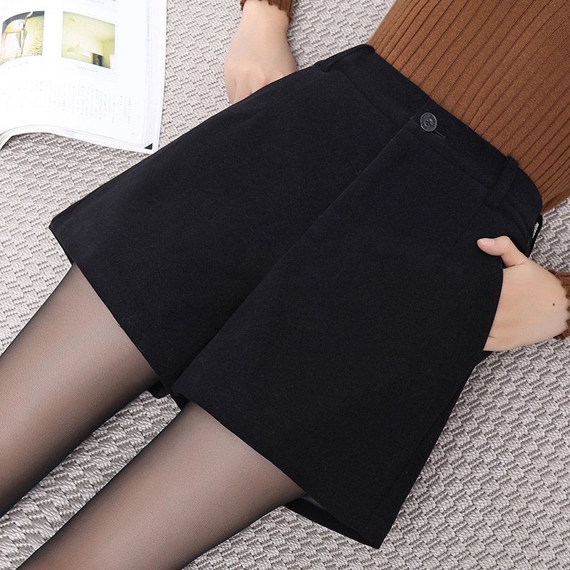 도매 모직 반바지 여자의 가을과 겨울 플러스 사이즈 두꺼운 따뜻한 넓은 다리 높은 허리 캐주얼 단어 외부 착용 기본 부츠 바지스토어 가기