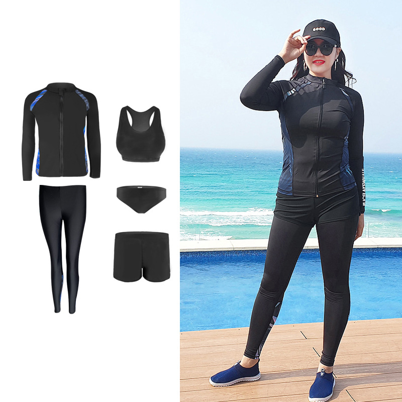 수영복 2020 새로운 다이빙 세트 플러스 사이즈 통통녀 긴 소매 바지 태양 방지 속건 다이빙 세트 5 종 세트