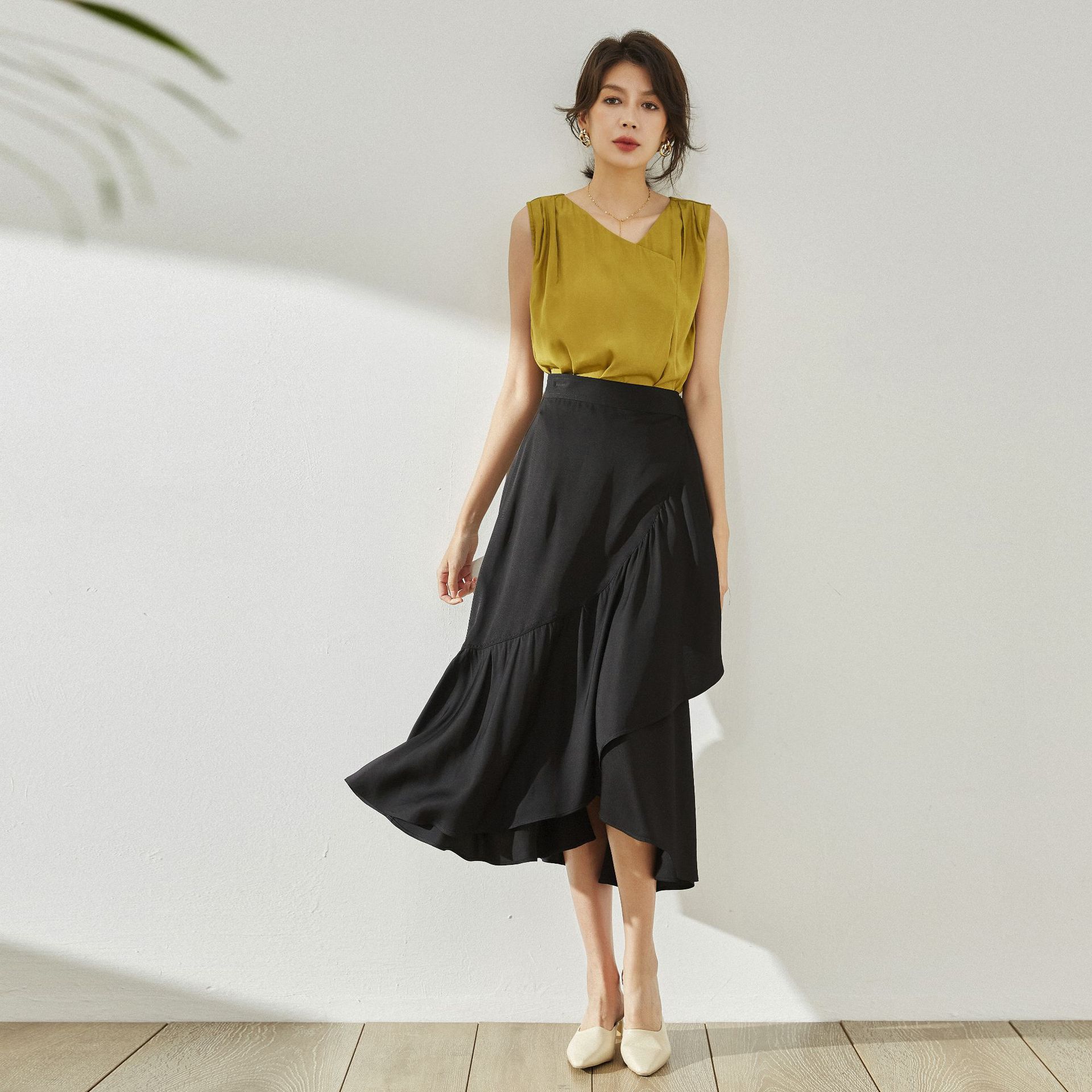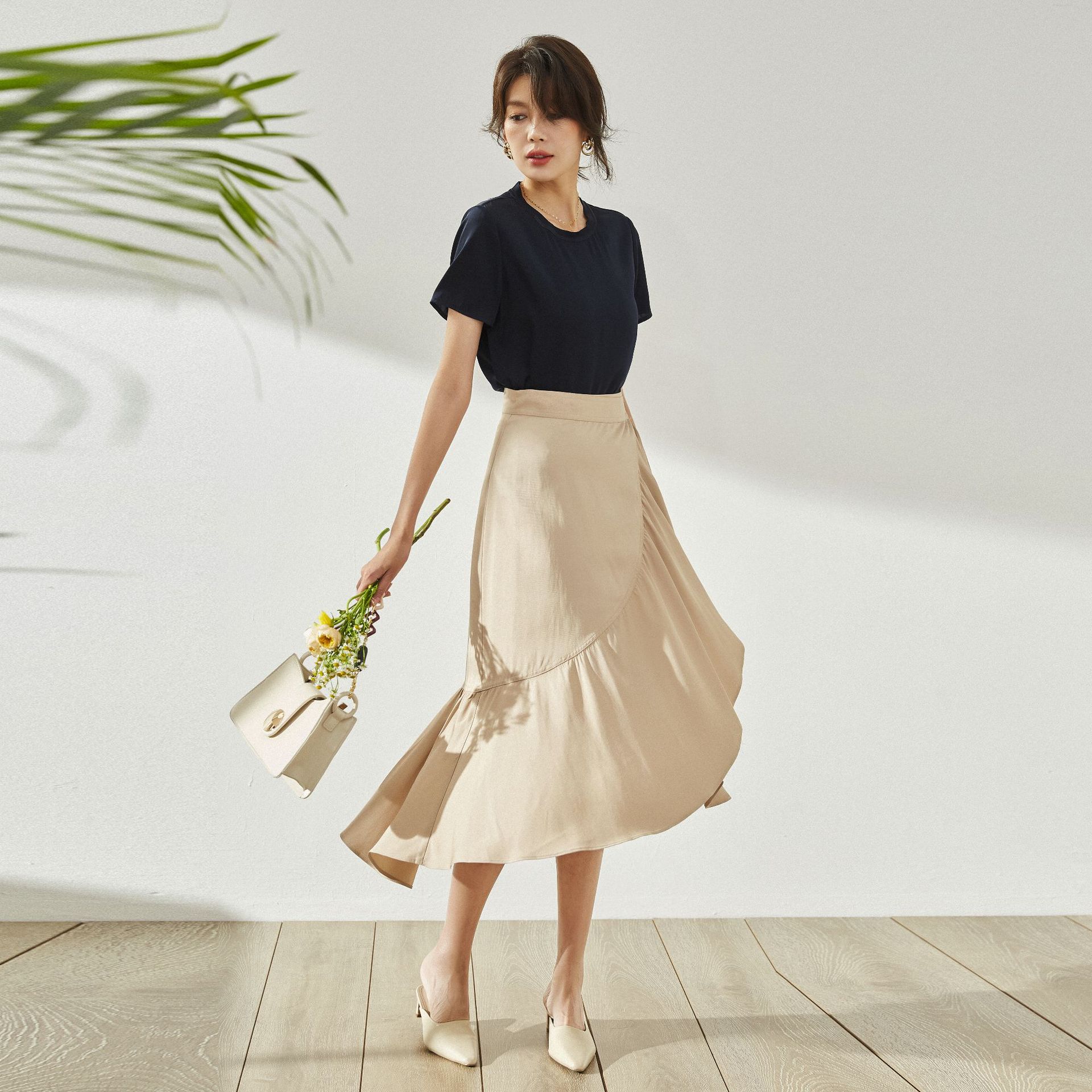 另外一个小细节,这款半身裙的拼接线都是压了双明线的,让整个裙子有立体感也重工了不少,好搭也实穿,上衣搭配衬衫T恤或是吊带都可~