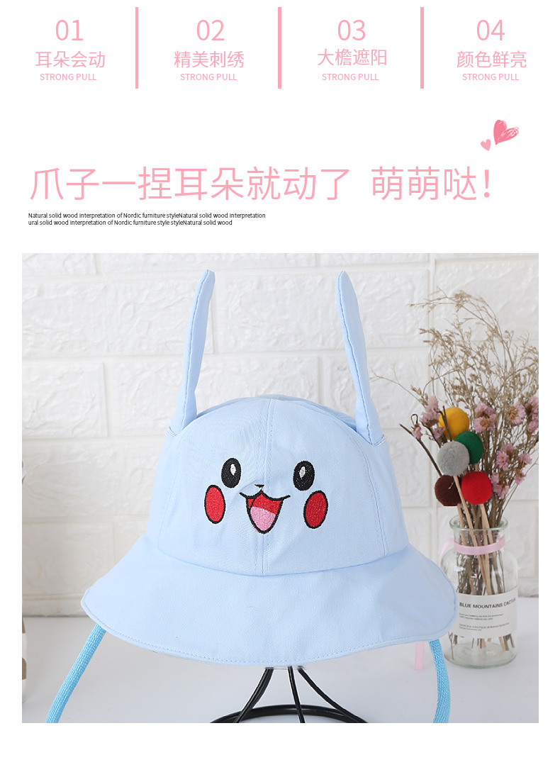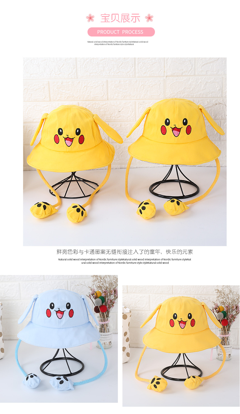 어린이 양산 어부 모자 흔들림 면 피카츄 토끼 모자 귀 이동 모자 부모와 자식 어트랙션 도매