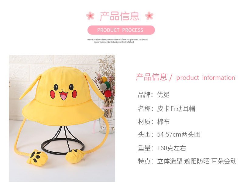 어린이 양산 어부 모자 흔들림 면 피카츄 토끼 모자 귀 이동 모자 부모와 자식 어트랙션 도매스토어 가기