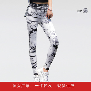 2020厂家直销健身瑜伽服女跑步吸湿排汗紧身高腰印花扎染运动长裤