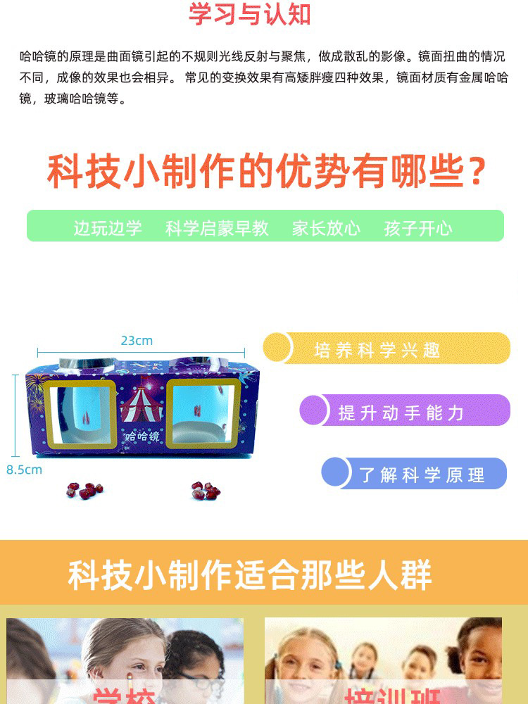 DIY 과학 실험 하 하 거울 오목 볼록 거울 유치원 과학 기술 소형 수제 재료 가방스토어 가기
