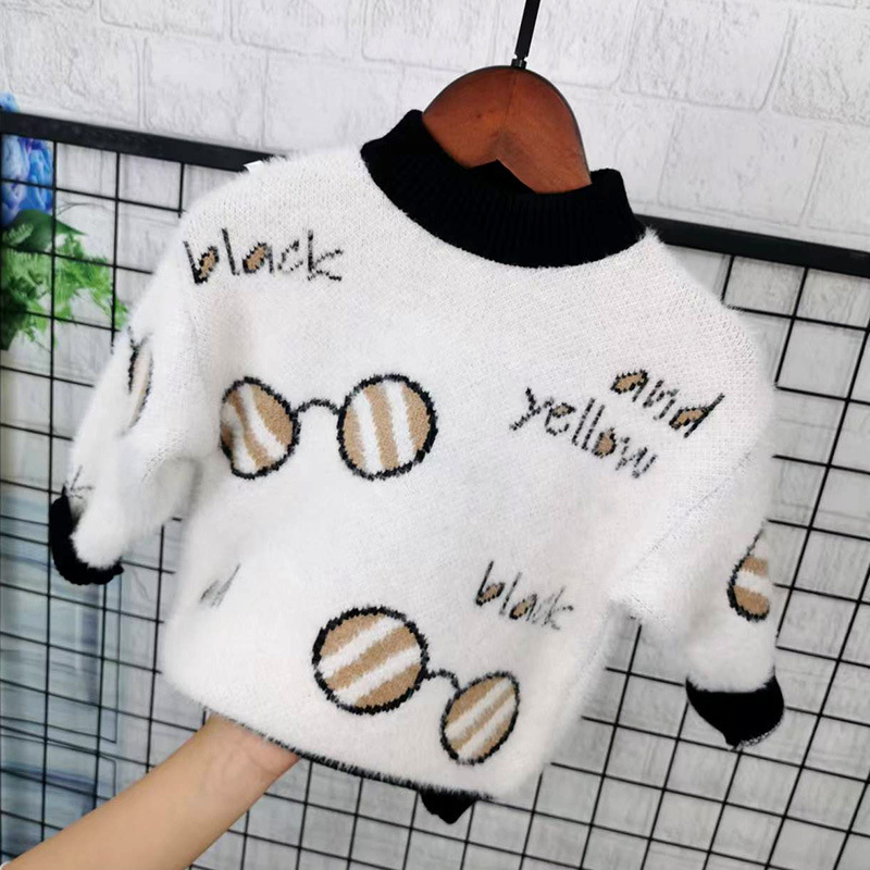 소년 안경 만화 스웨터 2025 겨울 라운드 넥 스웨터 한국 스타일 아동 풀오버 밍크 벨벳 풀오버 한국 스타일스토어 가기