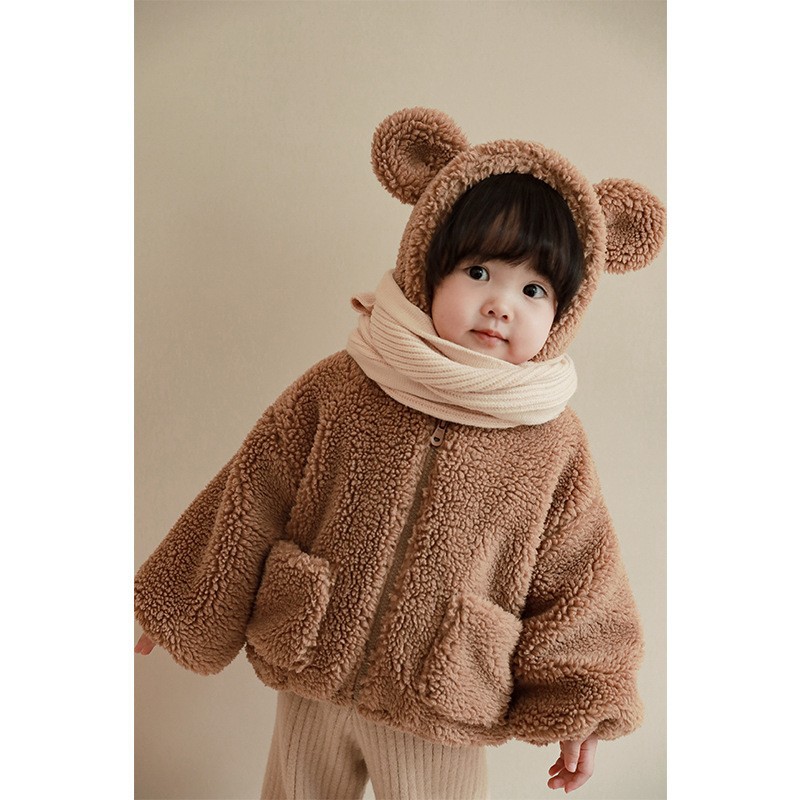 남아 램 울 코트 유행 어린이 후드 따뜻한 탑 두꺼운 아기의 플러시 코트 겨울 옷스토어 가기