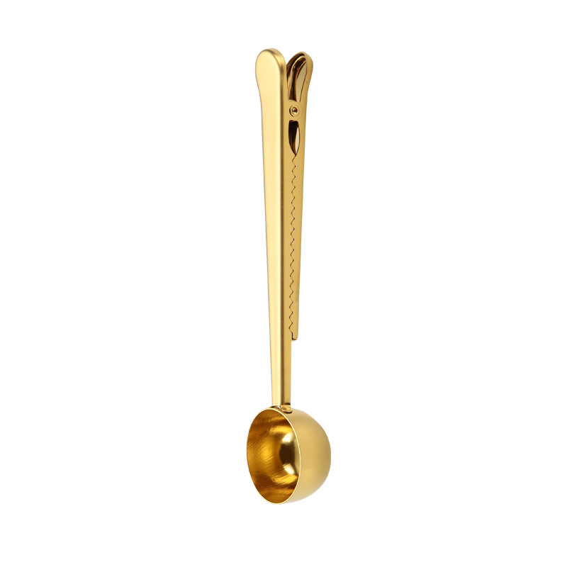 클립이있는 스테인레스 스틸 커피 계량 스푼 주방 용품 실링 클립 분유 측정 스푼이있는 금도금 투인원스토어 가기