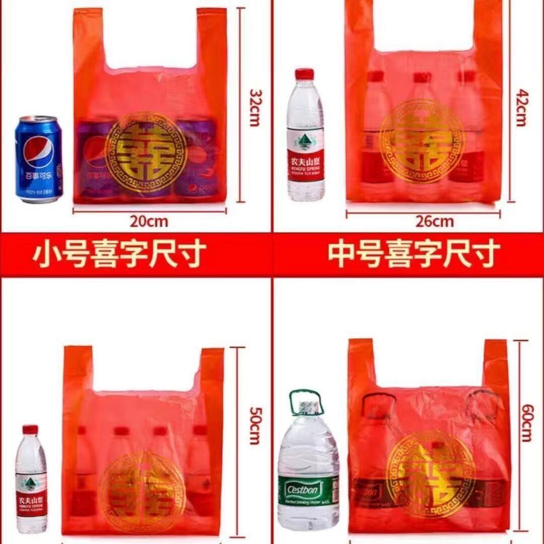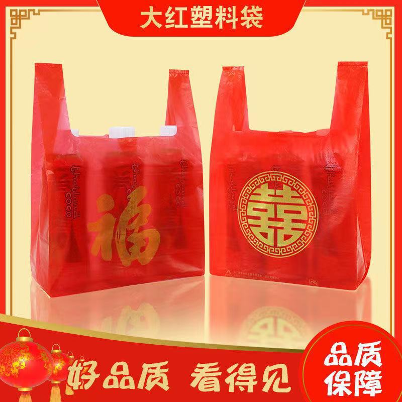 빨간 비닐 봉지 두꺼운 행운의 단어 결혼식 축제 새해 슈퍼마켓 선물 쇼핑 조끼 가방 식품 가방 도매스토어 가기