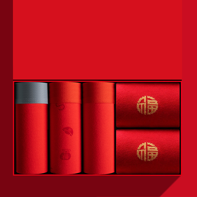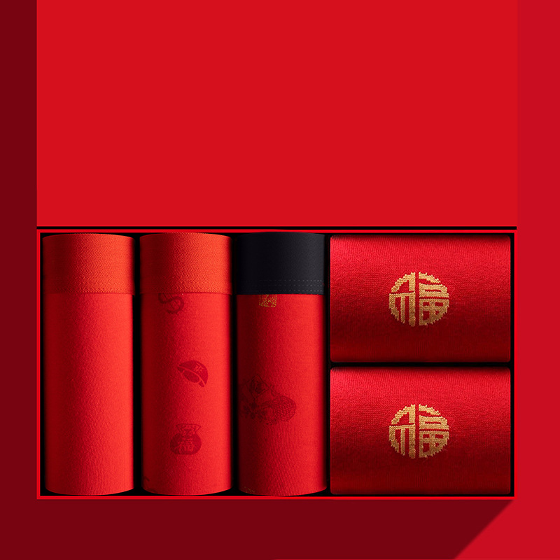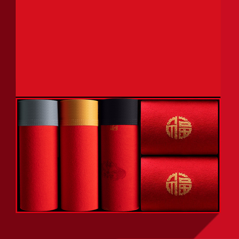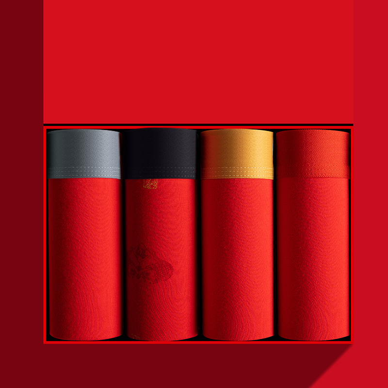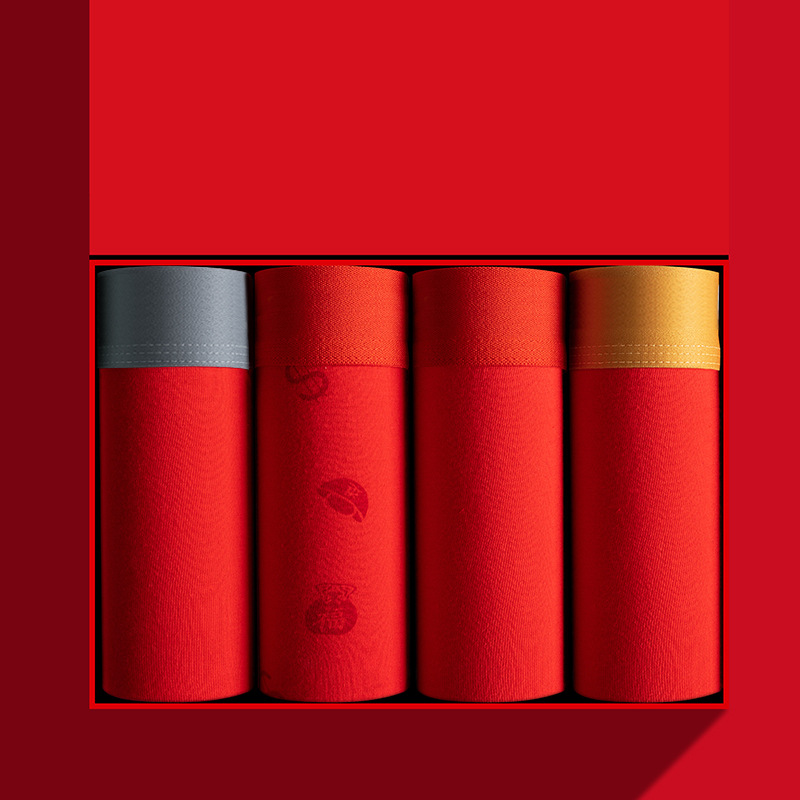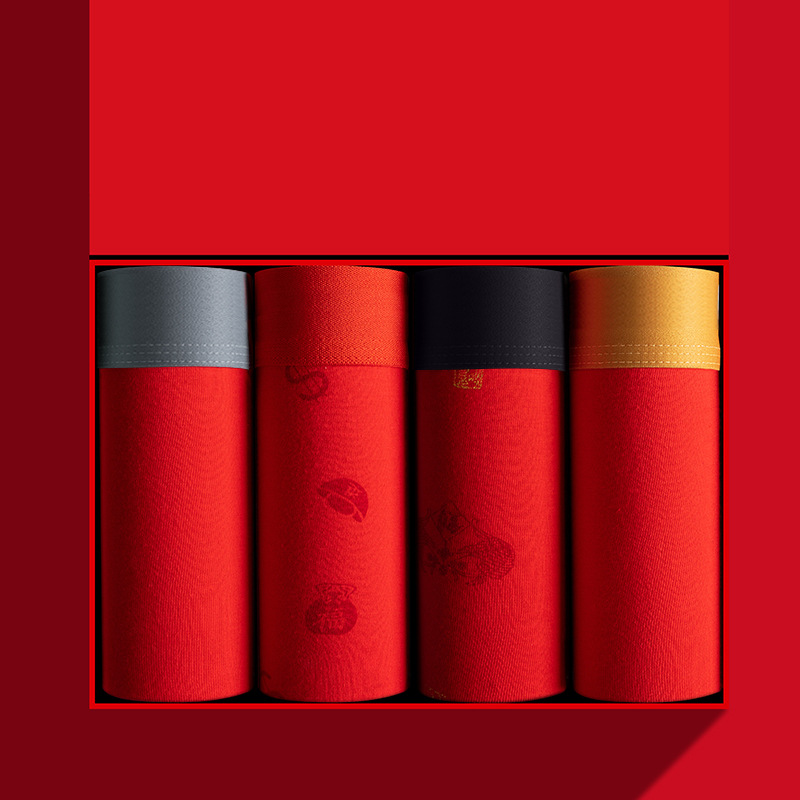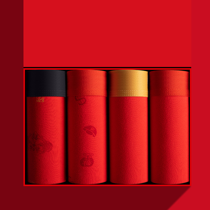 남성 선물용 속옷 사각팬티, 생년의 해에 입는 빨간색 결혼 선물, 항균 사각팬티, 뱀의 해에 입는 가방 포장