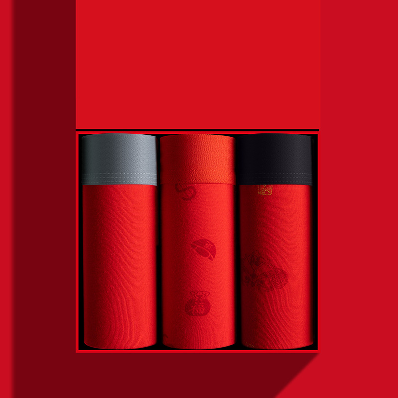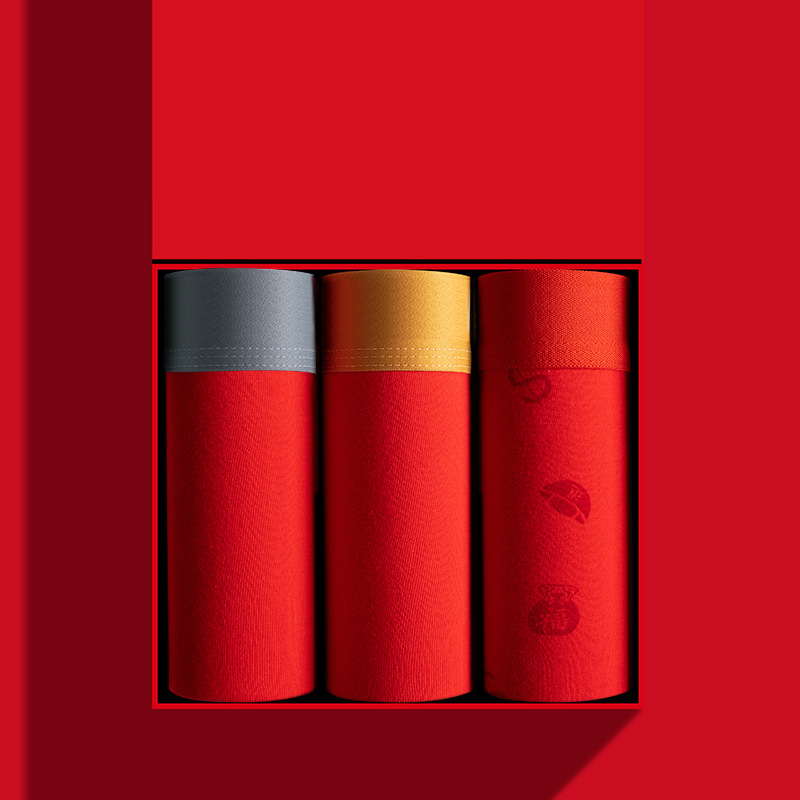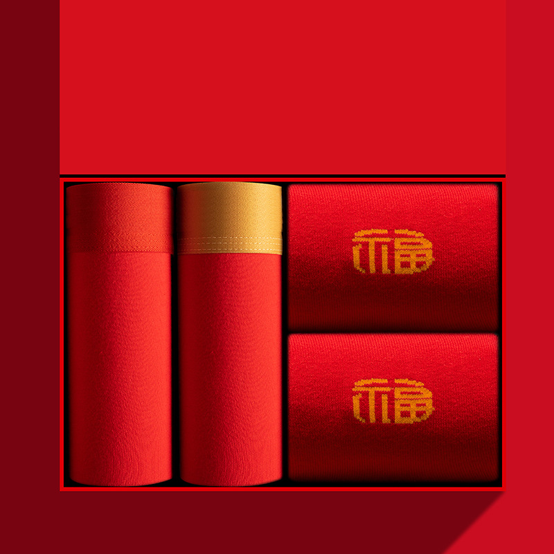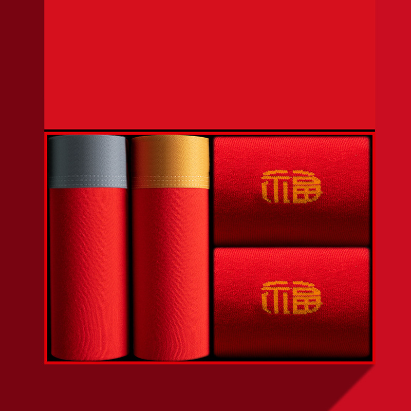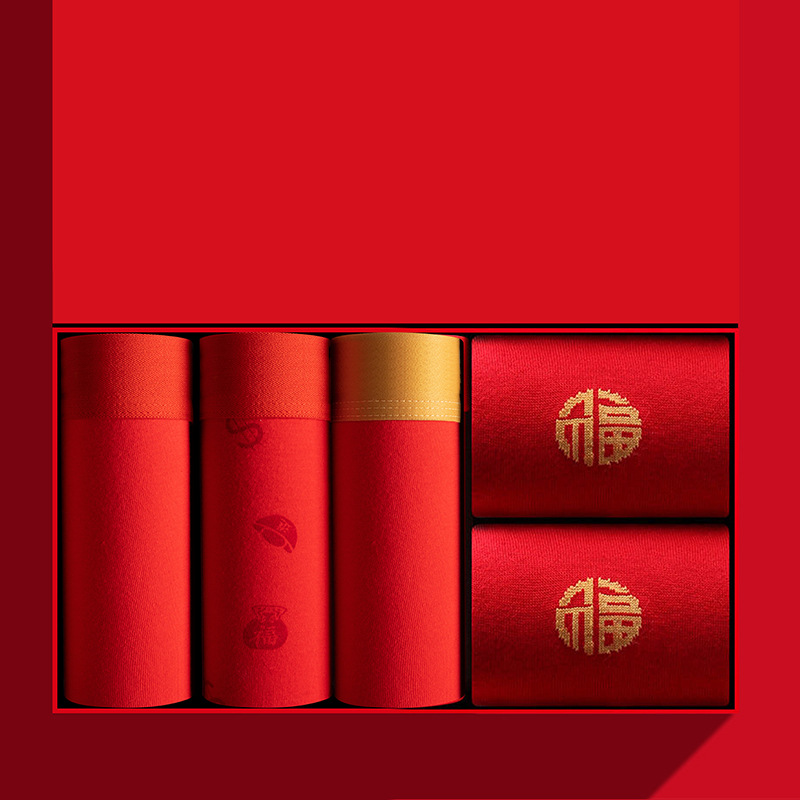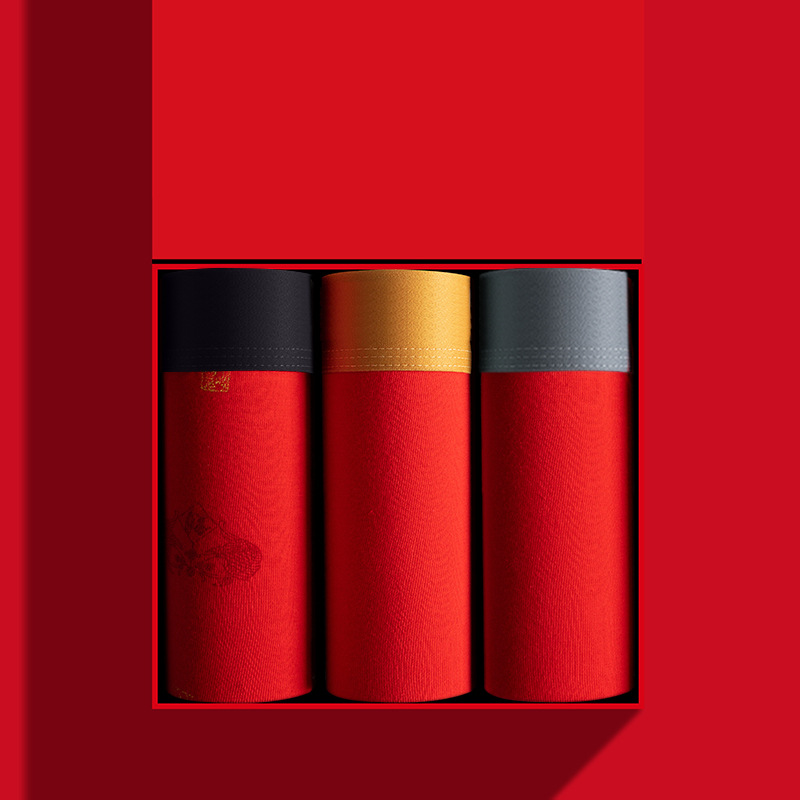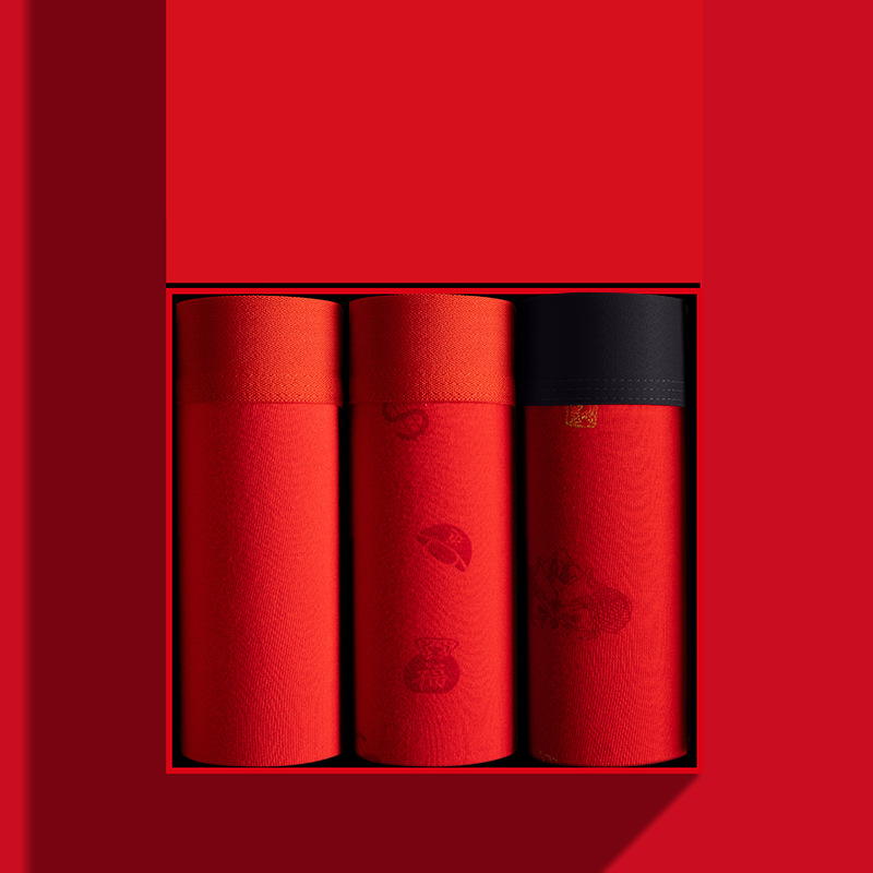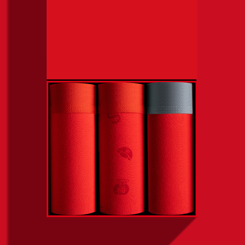 남성 선물용 속옷 사각팬티, 생년의 해에 입는 빨간색 결혼 선물, 항균 사각팬티, 뱀의 해에 입는 가방 포장