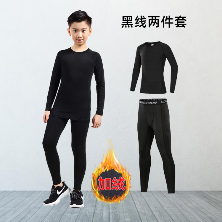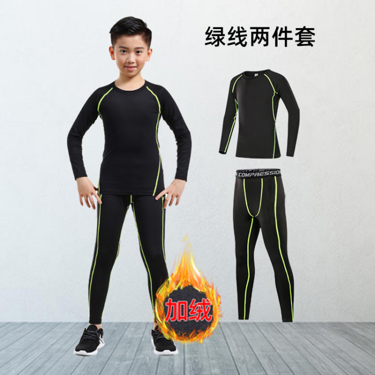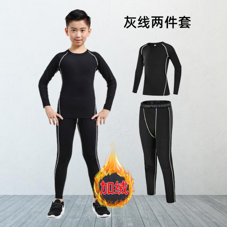 아동용 타이츠 플러스 벨벳 세트 남녀 공용 스포츠 베이스 레이어 러닝 농구 트레이닝 타이츠 피트니스 의류 빠른 건조