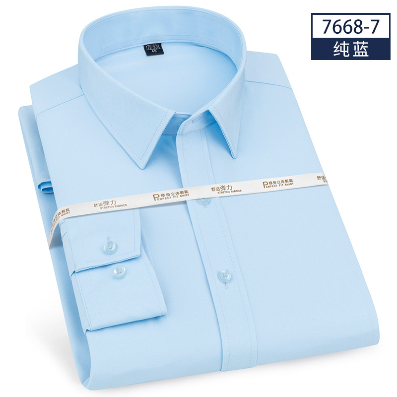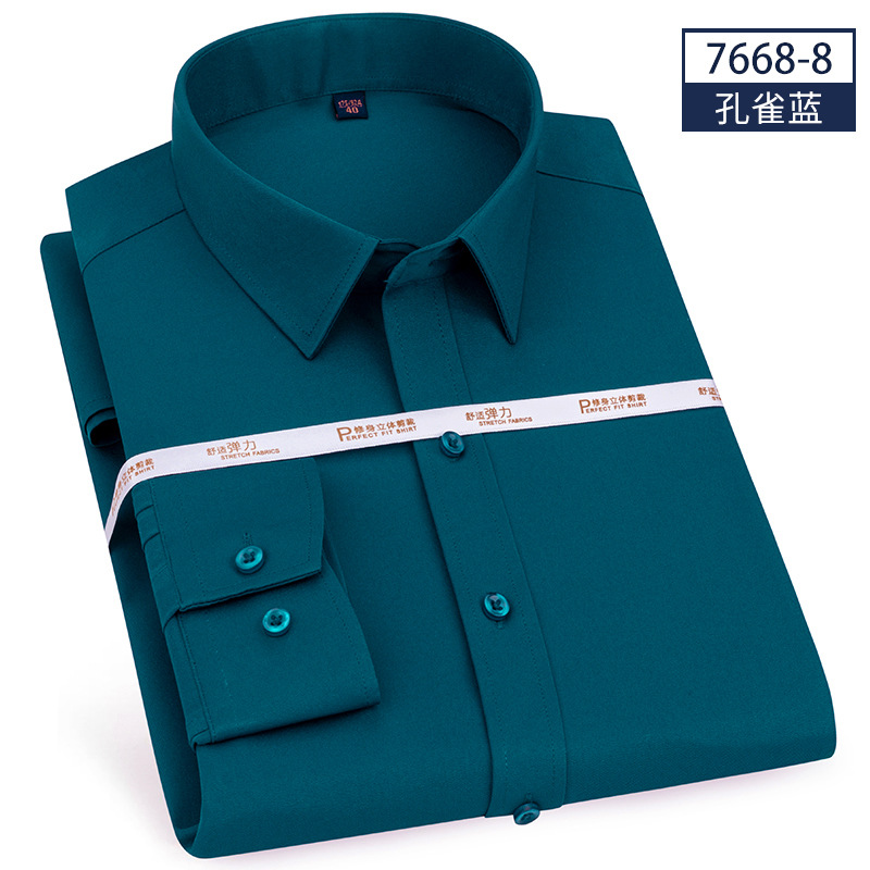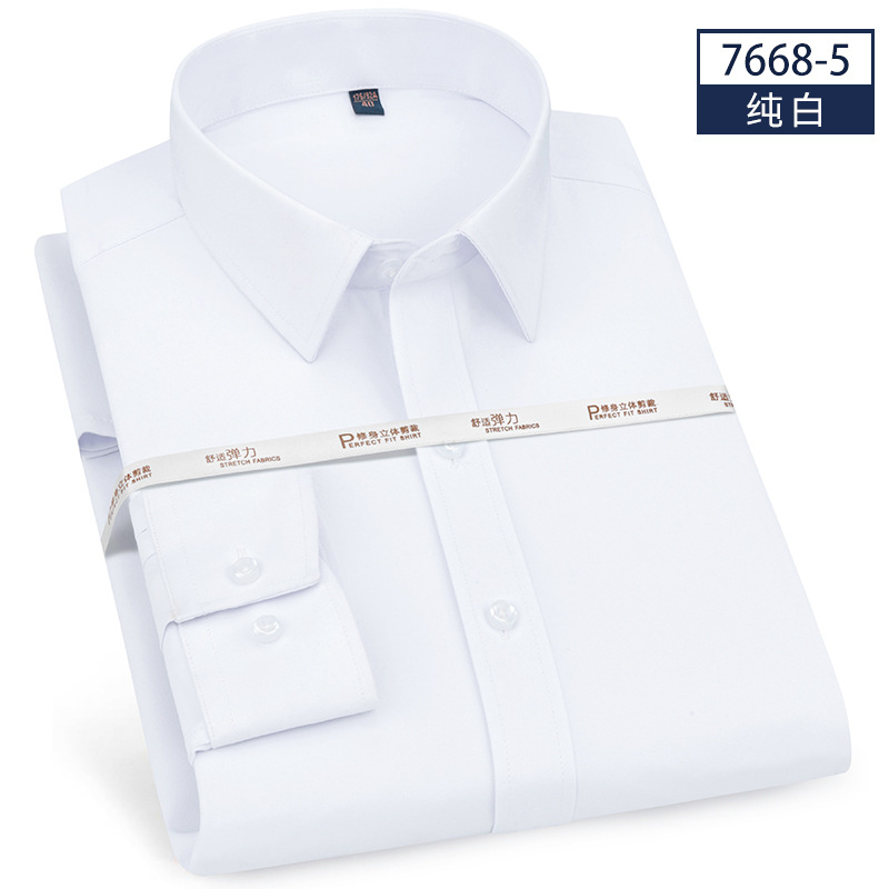 스트레치 셔츠 남자의 긴팔 슬림 핏 비 다림질 비즈니스 캐주얼 화이트 비즈니스 원피스 한국 스타일 비 포켓 셔츠