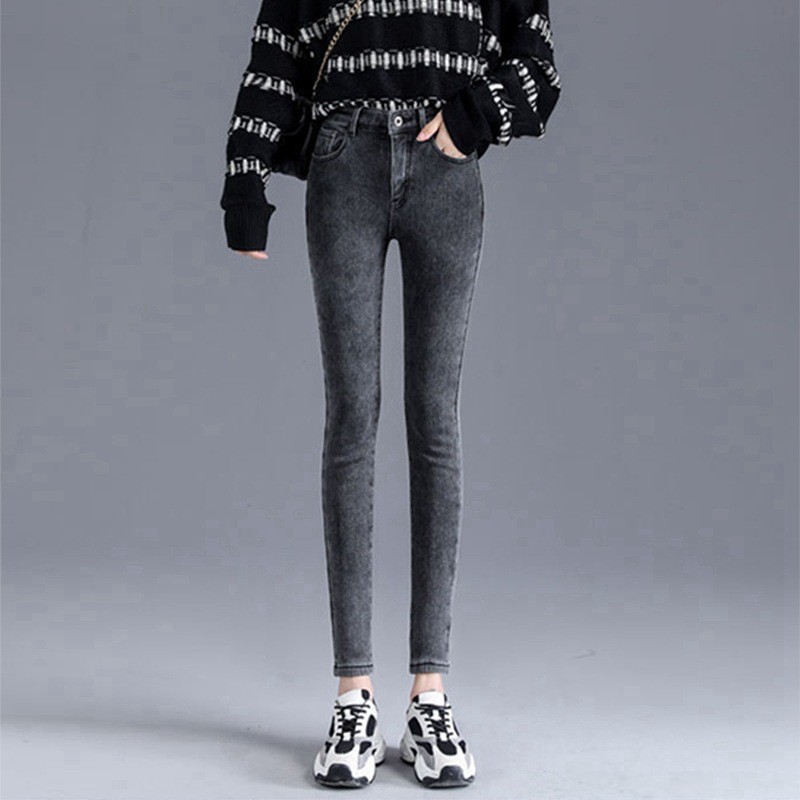 여성용 청바지 봄 가을 겨울 2025년 신상 기모 슬림핏 하이웨이스트 탄력 있는 슬림핏 펜슬 팬츠 트렌디스토어 가기