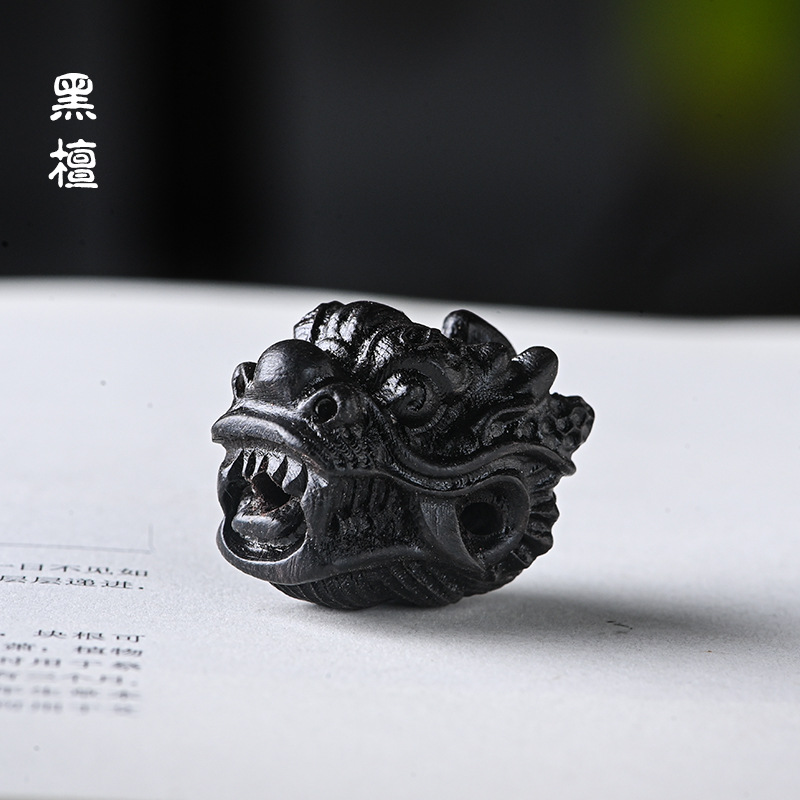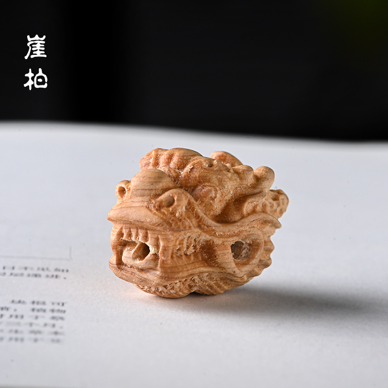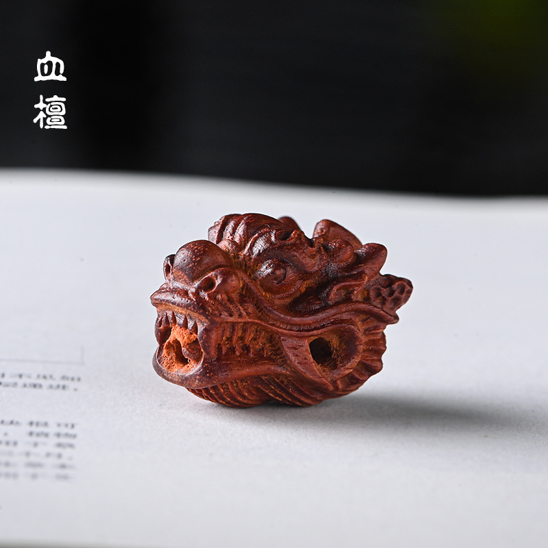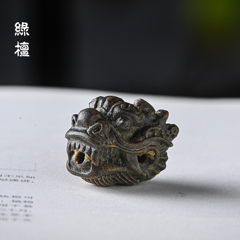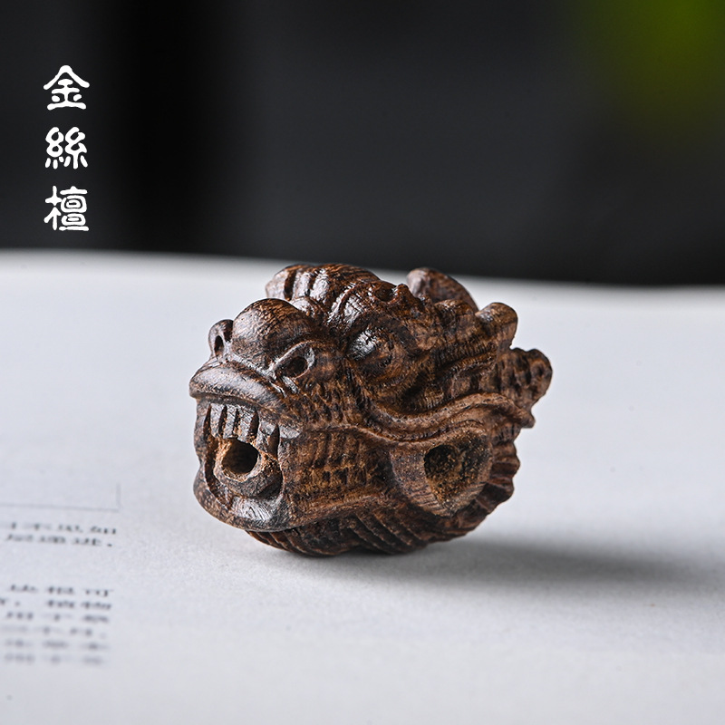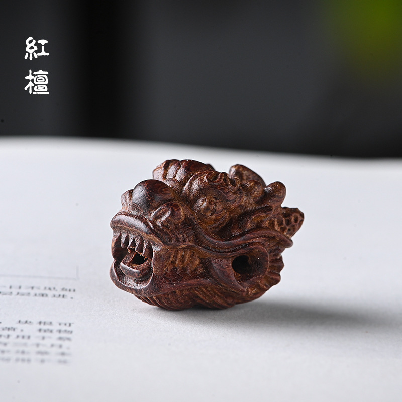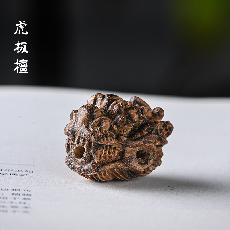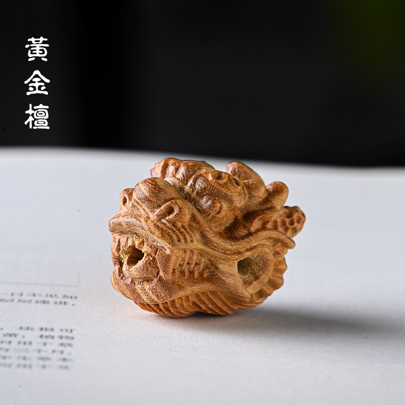 檀木雕刻龙头三通 手工DIY星月金刚菩提佛珠配饰配件 尺寸约2.5*2..*2.1cm