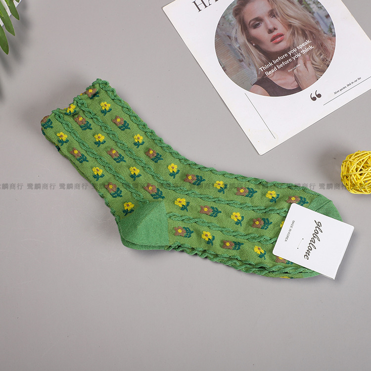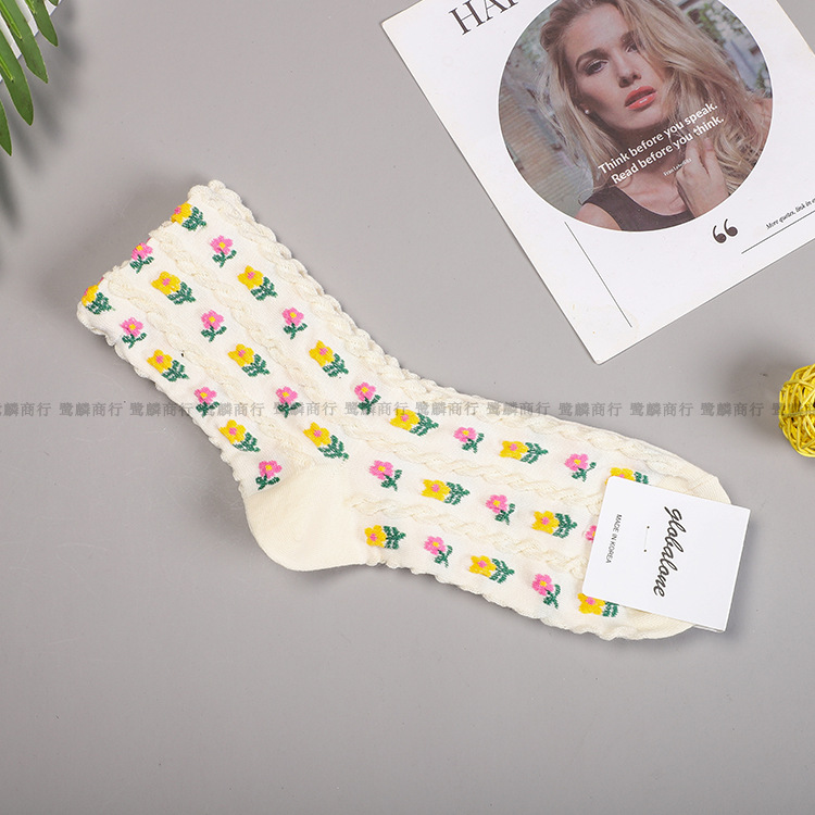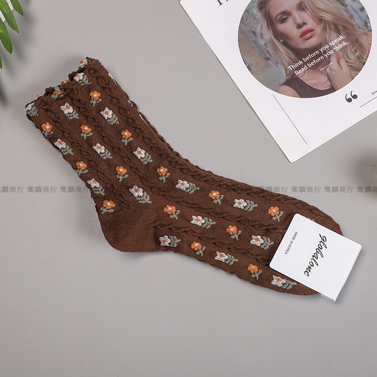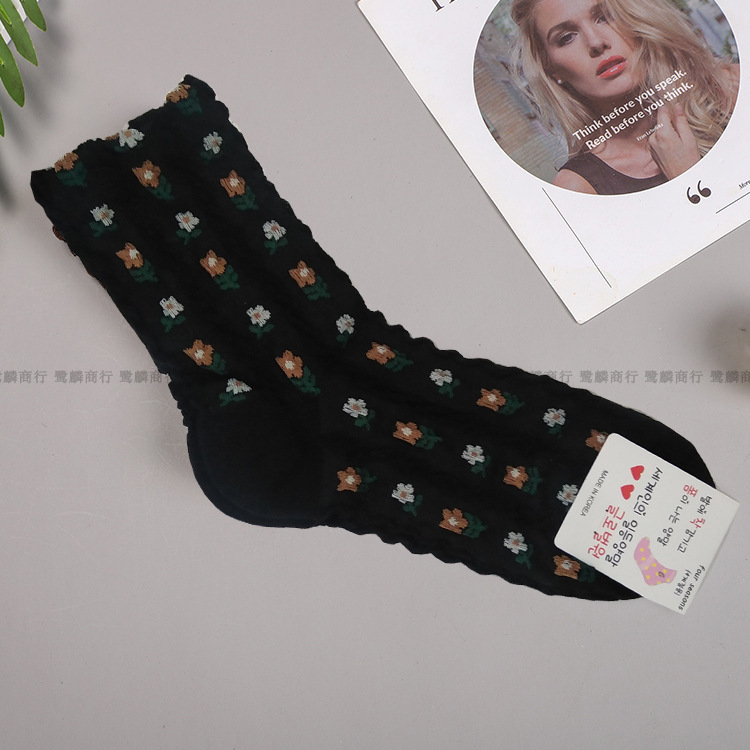 GLW236 한국 꽃무늬 양말 겨울 레트로 스타일 패션 꽃무늬 거리 패션 양말 한국 스타일 여성 중간 길이 양말스토어 가기