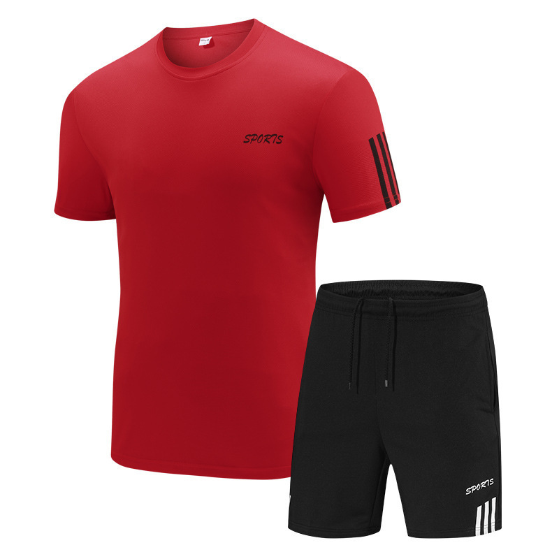 스포츠 세트 남자의 반소매 여름 얇은 달리기 피트니스 세트 반소매 반바지 통기성 속건 티셔츠 스포츠웨어