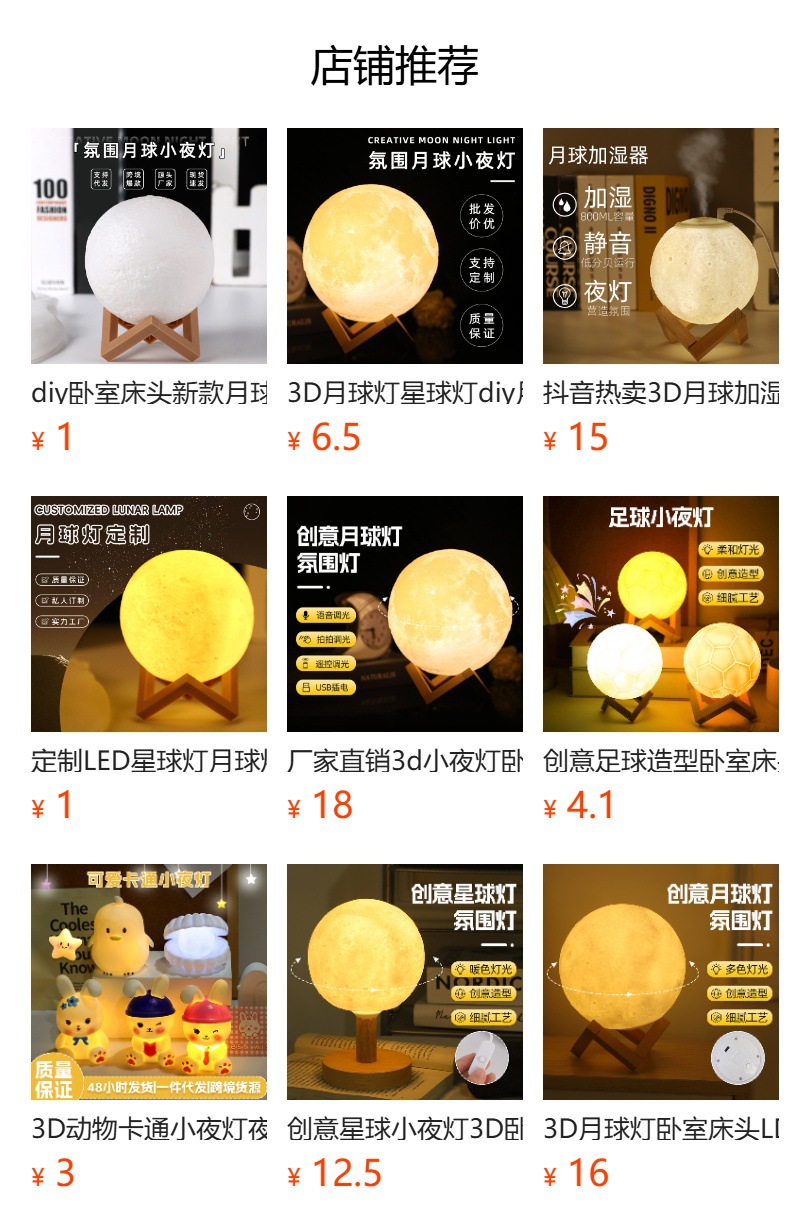 DIY 침실 침대 옆 신형 달 조명, 인스타 감성 침대 옆 부드럽고 눈에 좋은 부드러운 빛의 달 조명, 야간 조명스토어 가기