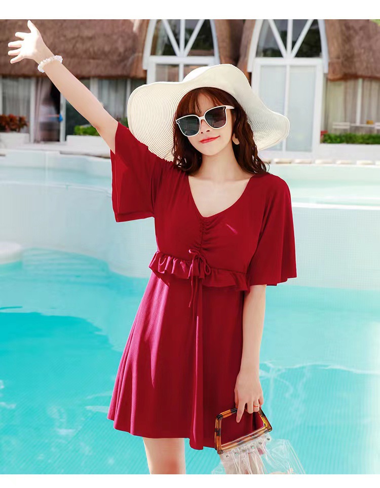 플러스 사이즈 수영복 여자의 통통녀 배꼽 커버 큰 배꼽 커버 슬리밍 큰 가슴 보수적 인 느슨한 긴 뚱뚱한 소녀 플러스 수영복