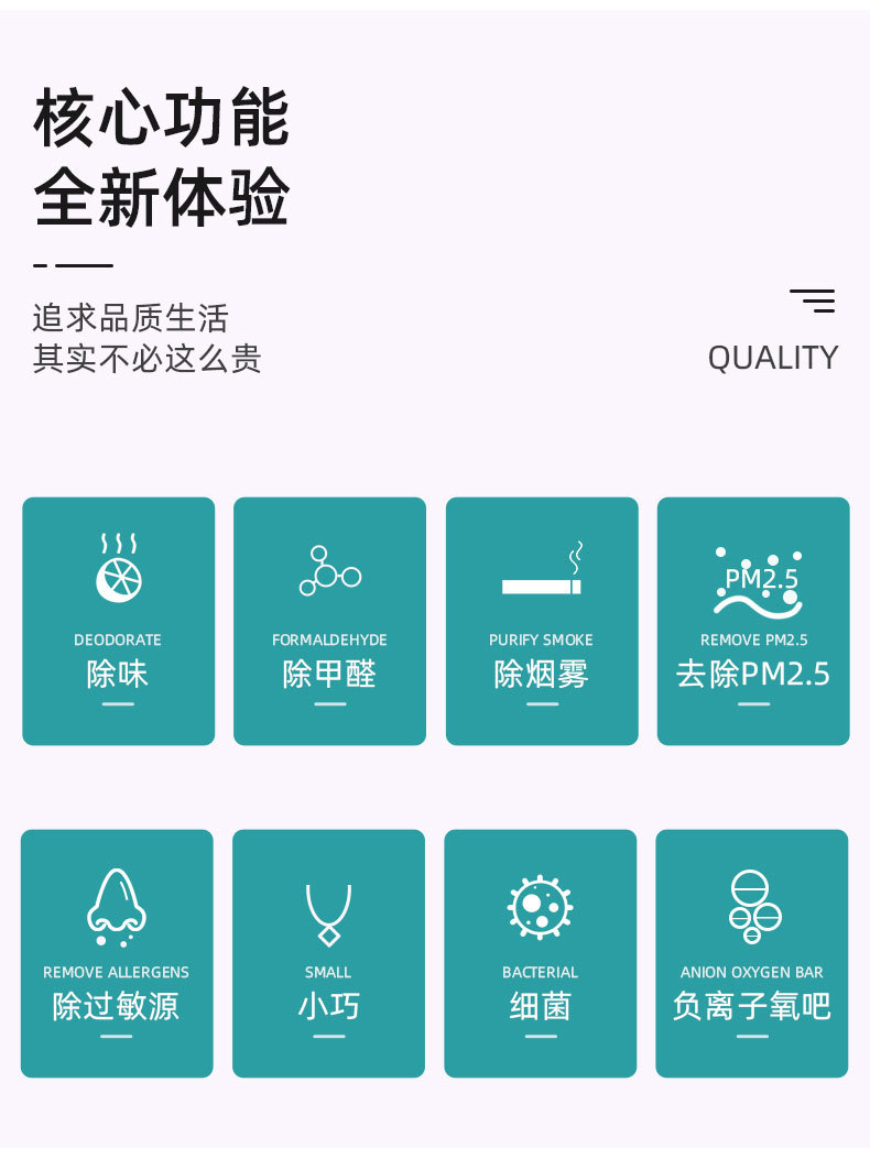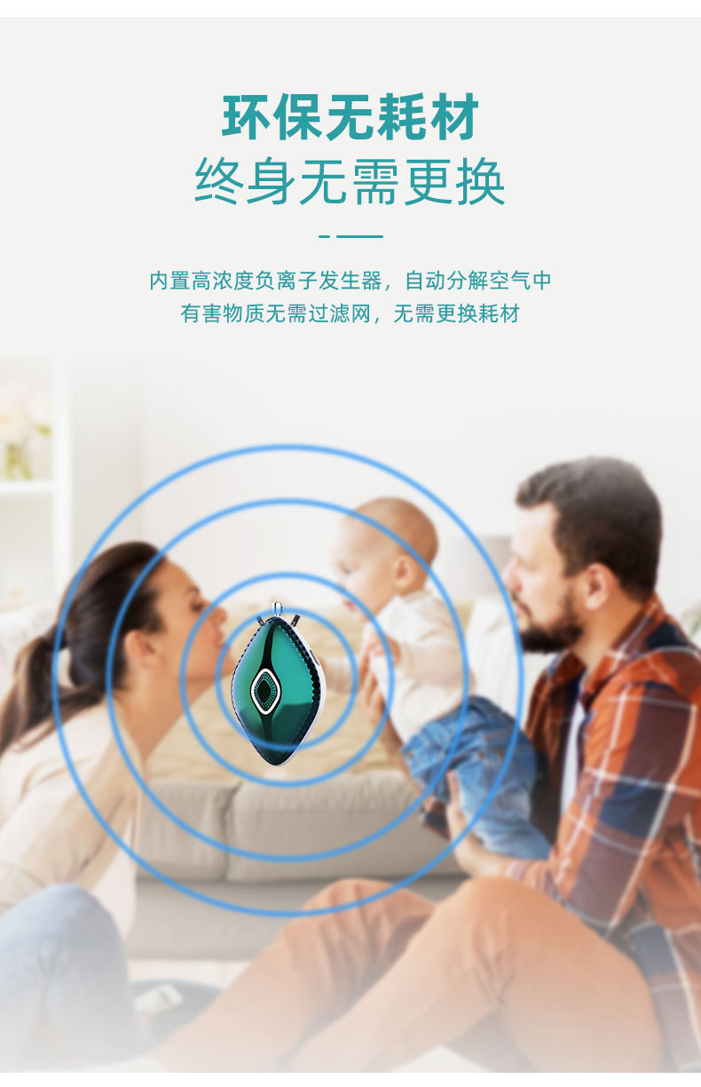 국경을 넘는 웨어러블 음이온 공기청정기 선물, 포름알데히드 제거, 간접흡연 제거, 가정용 소형 공기청정기