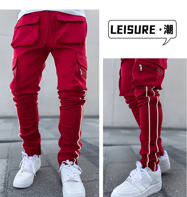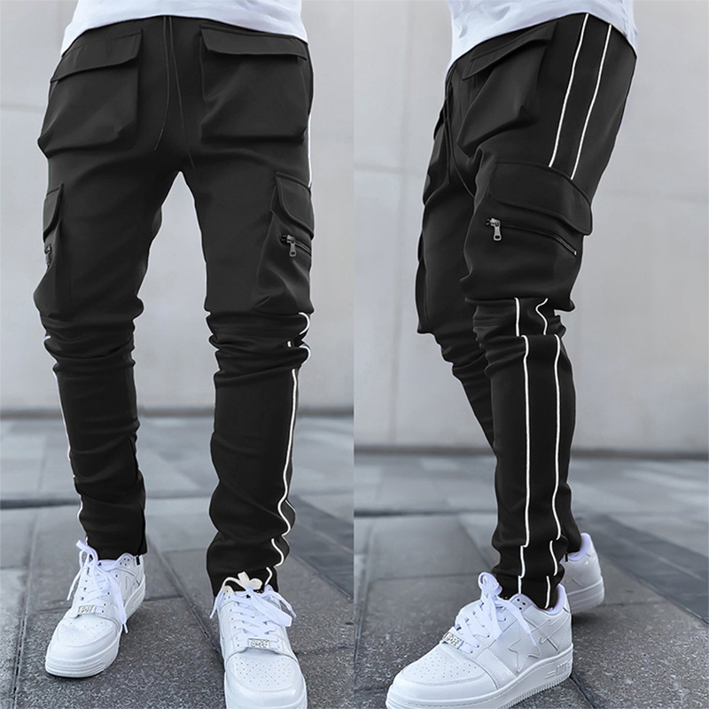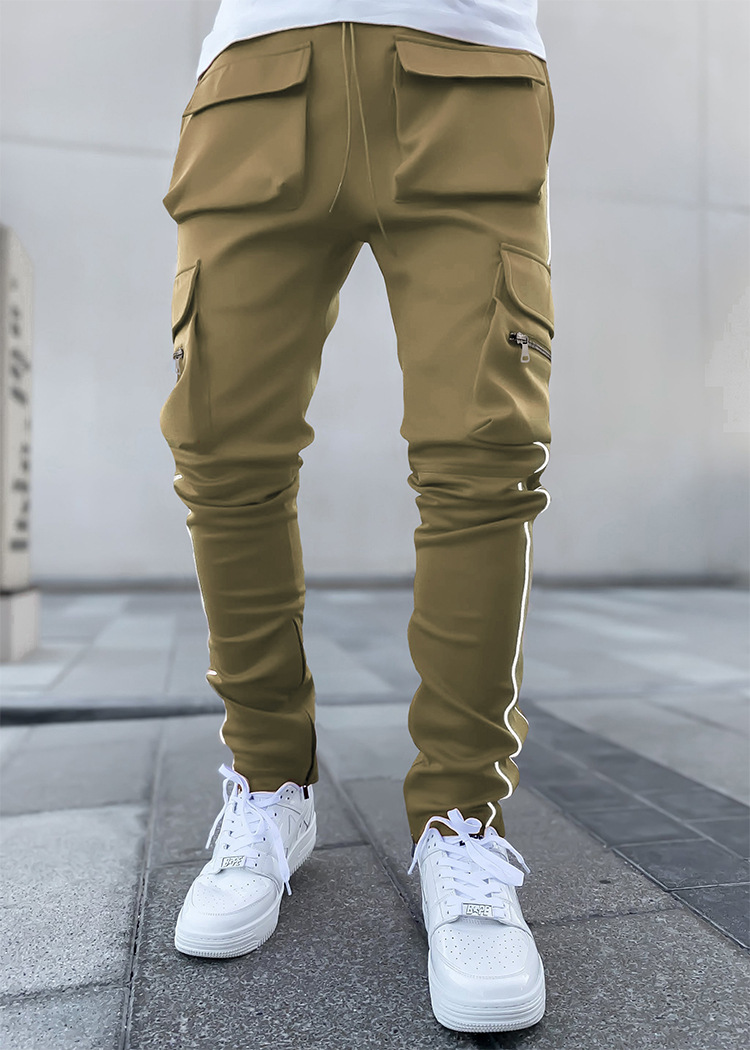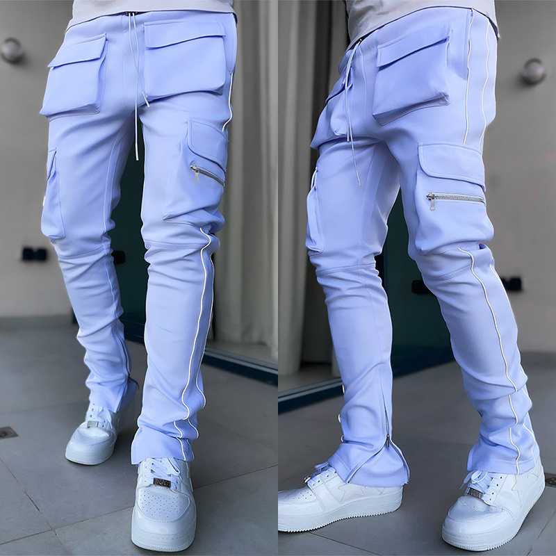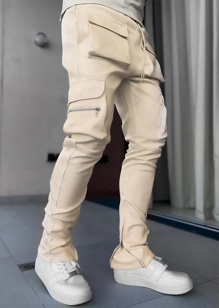 2025 신상 남성 바지 라이트 럭셔리 고급스러운 봄 가을 남성 캐주얼 바지 한국 스타일 다중 포켓 작업복 바지스토어 가기