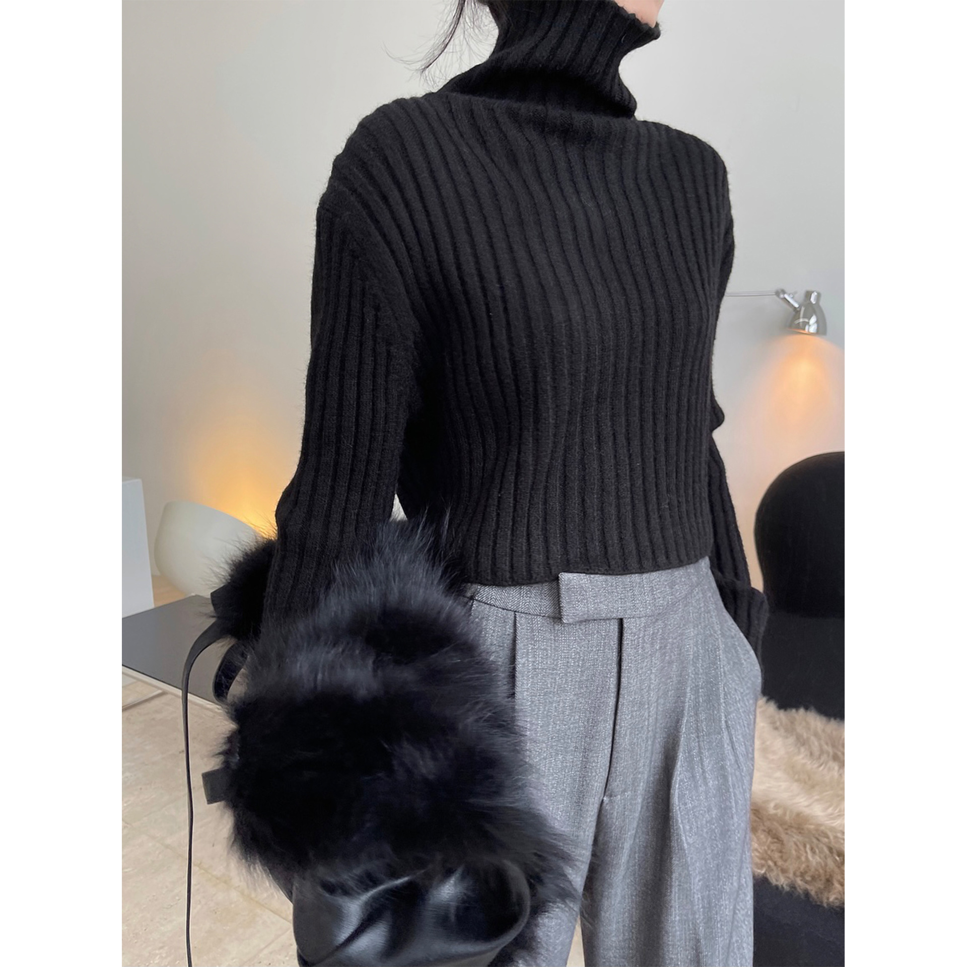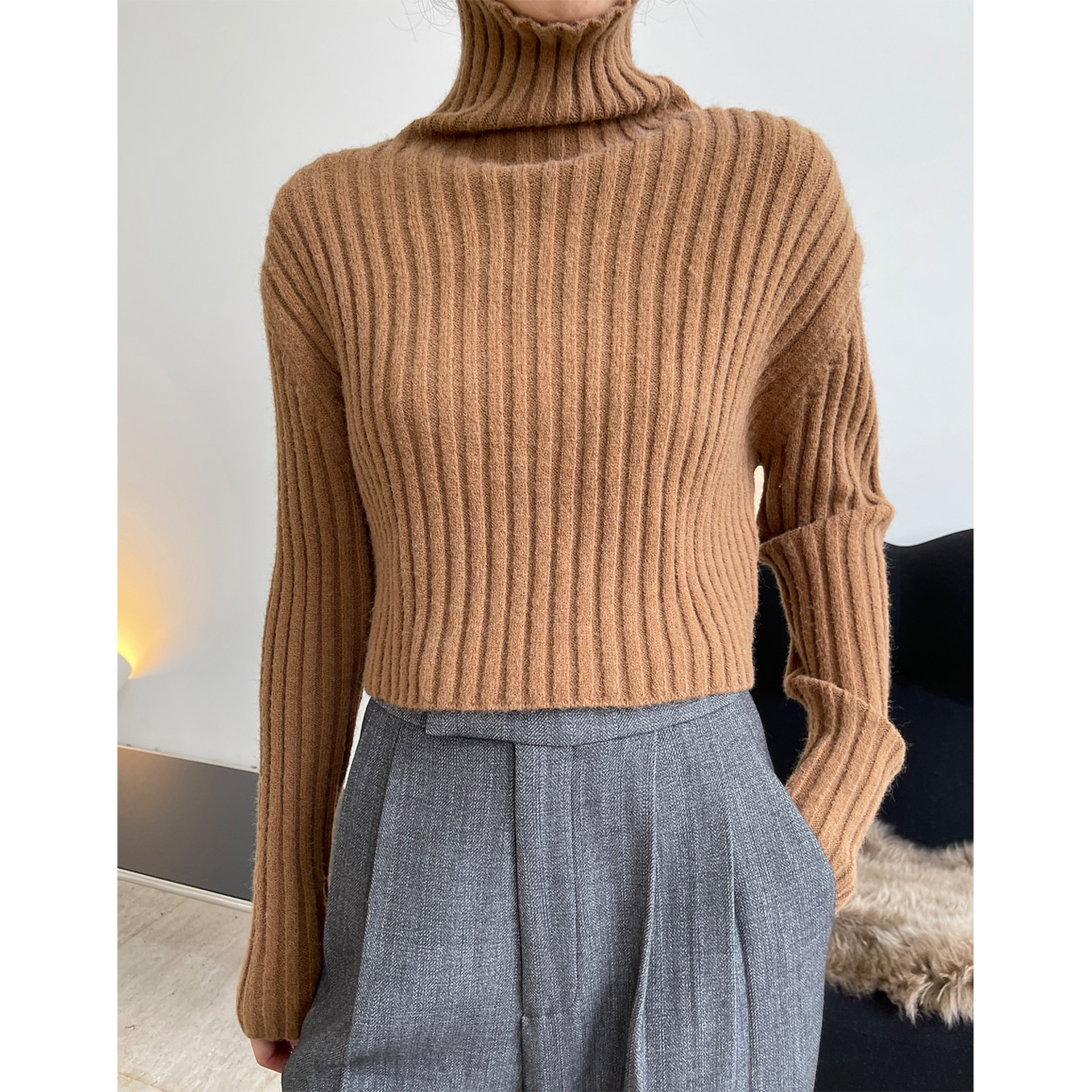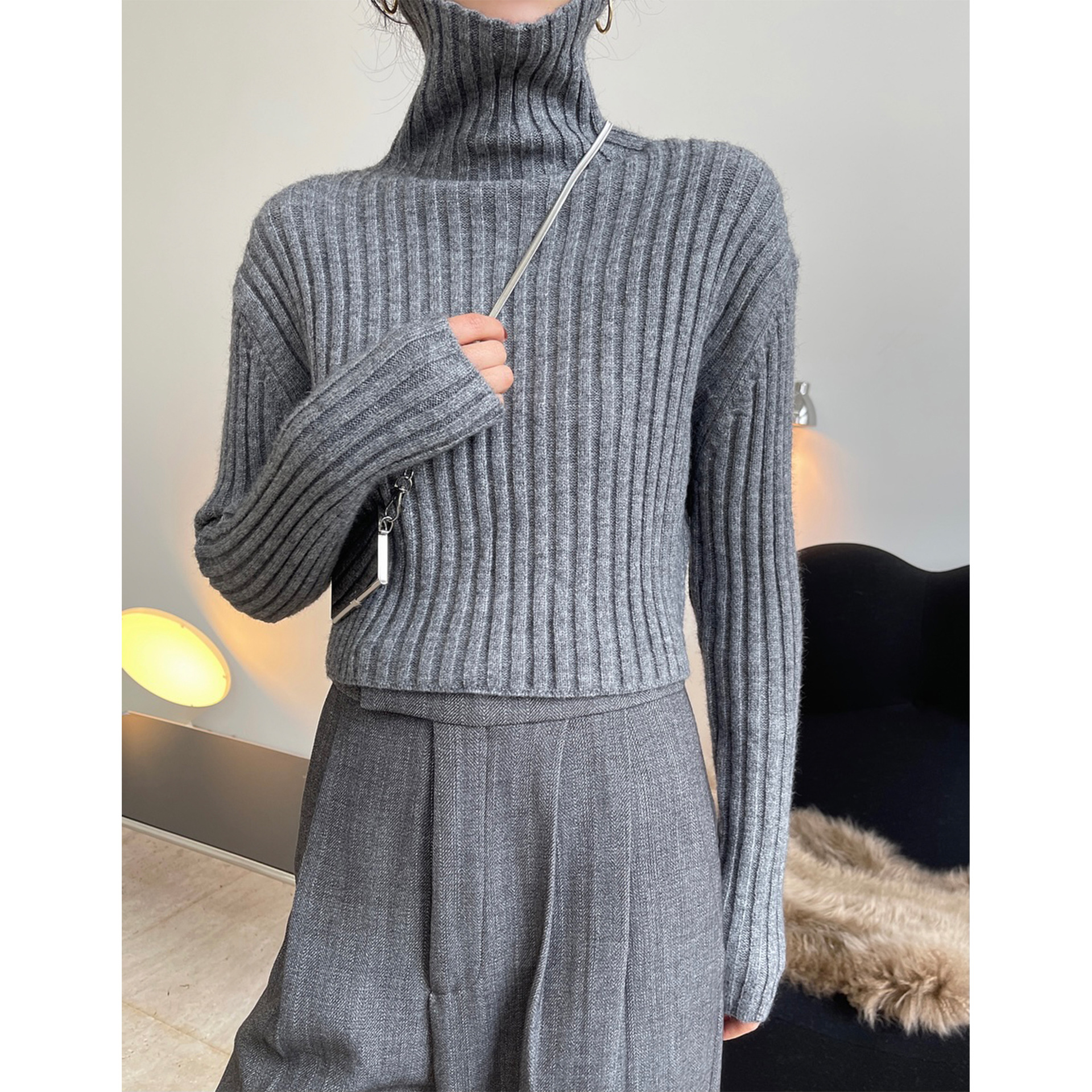 유행 하이 넥 하이 웨이스트 짧은 스웨터 여성을위한 편안한 캐주얼 따뜻한 슬리밍 탑의 겨울 새로운 유럽 및 미국 블로거스토어 가기