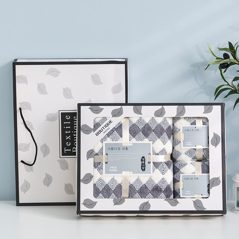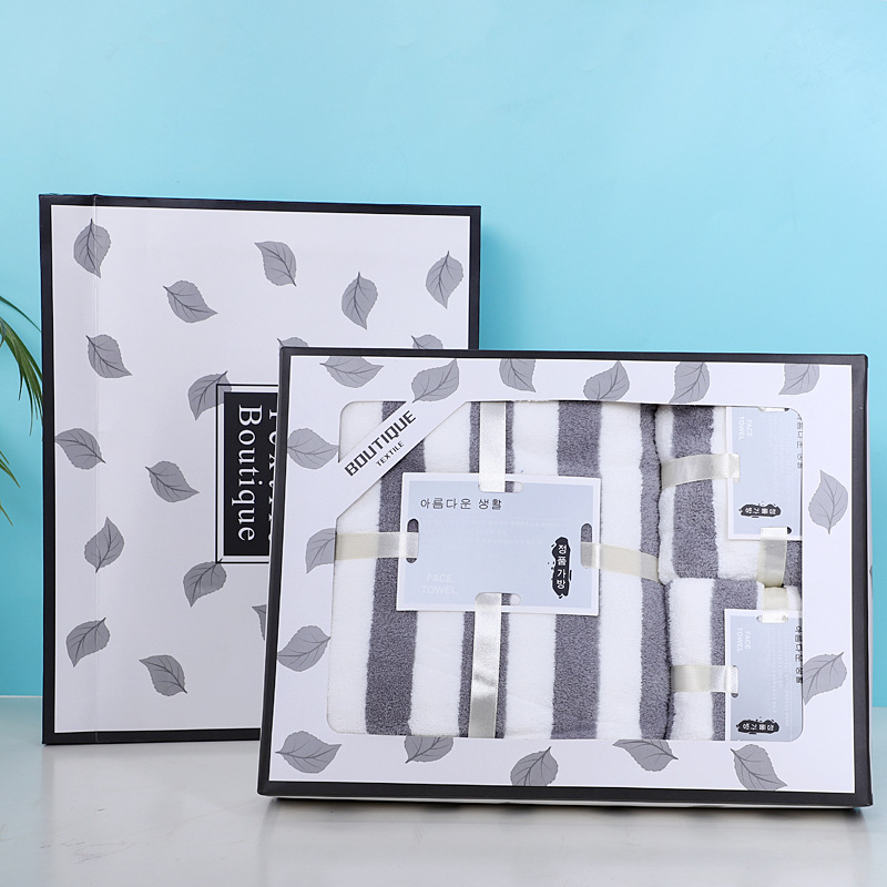 수건, 목욕타월 선물세트 3종 세트, 결혼식, 생일잔치 답례품, 연회 기념품, 로고 인쇄 가능, 라이트 럭셔리