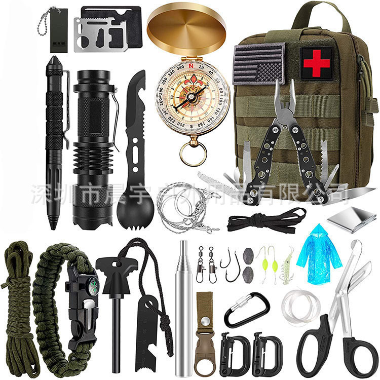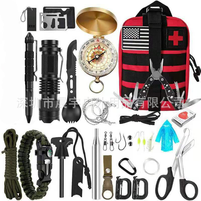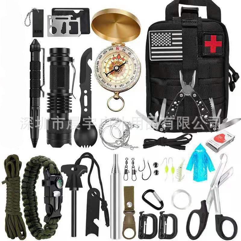 야외 등산 모험 응급 처치 전술 패키지 생존 도구 조합 세트 다기능 필드 생존 SOS 공급스토어 가기