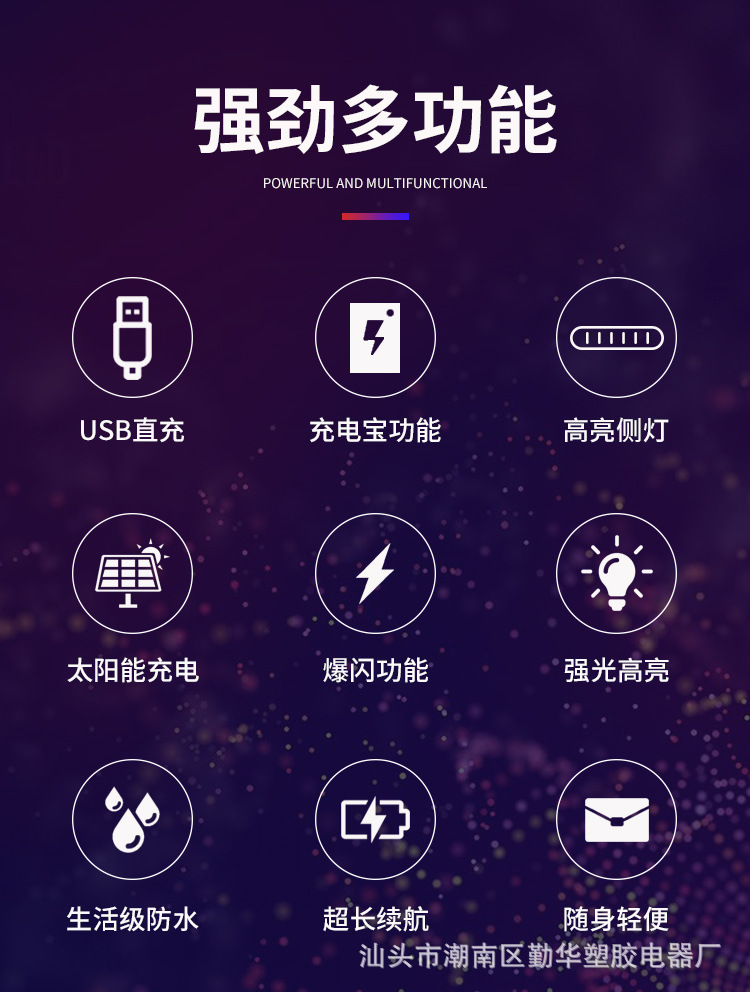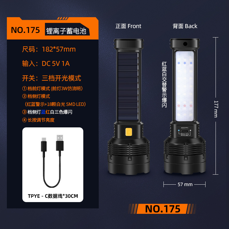 TPYE-C充电口 3-4小时强光续航 三色侧灯爆闪