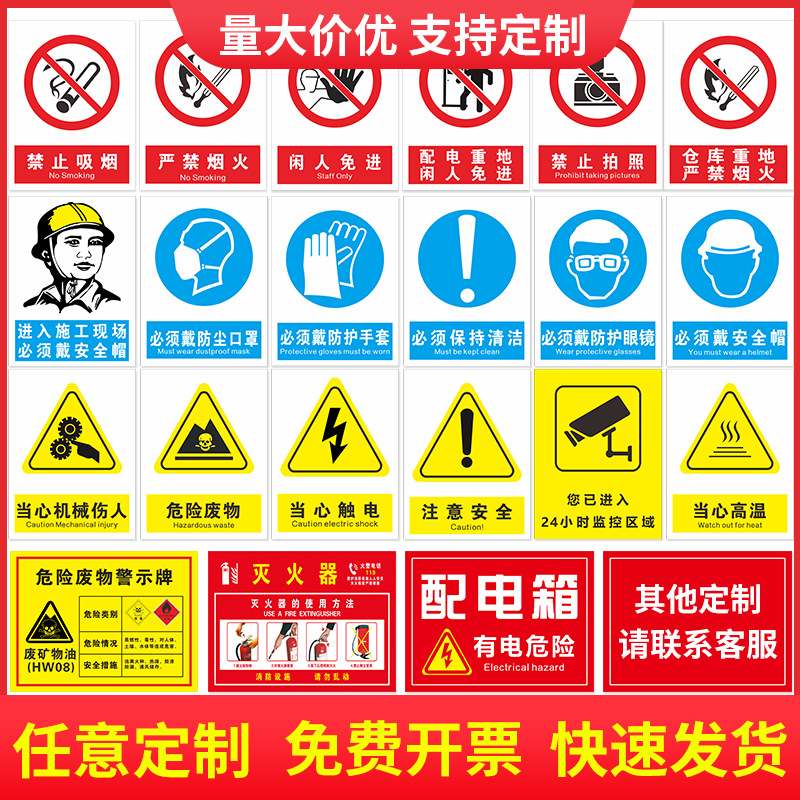 안전 표지판 위험 표지판 금지 경고 작업장 생산 관리 슬로건 현장 건설 따뜻한 알림스토어 가기