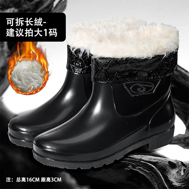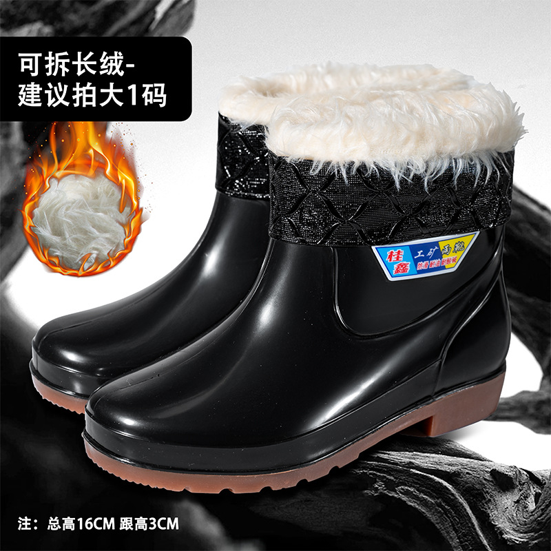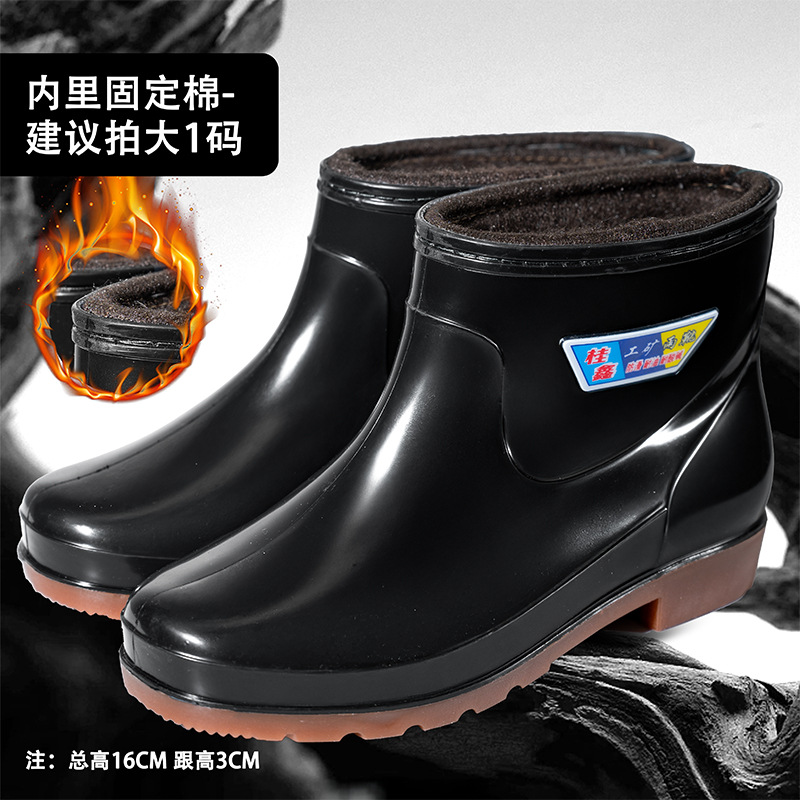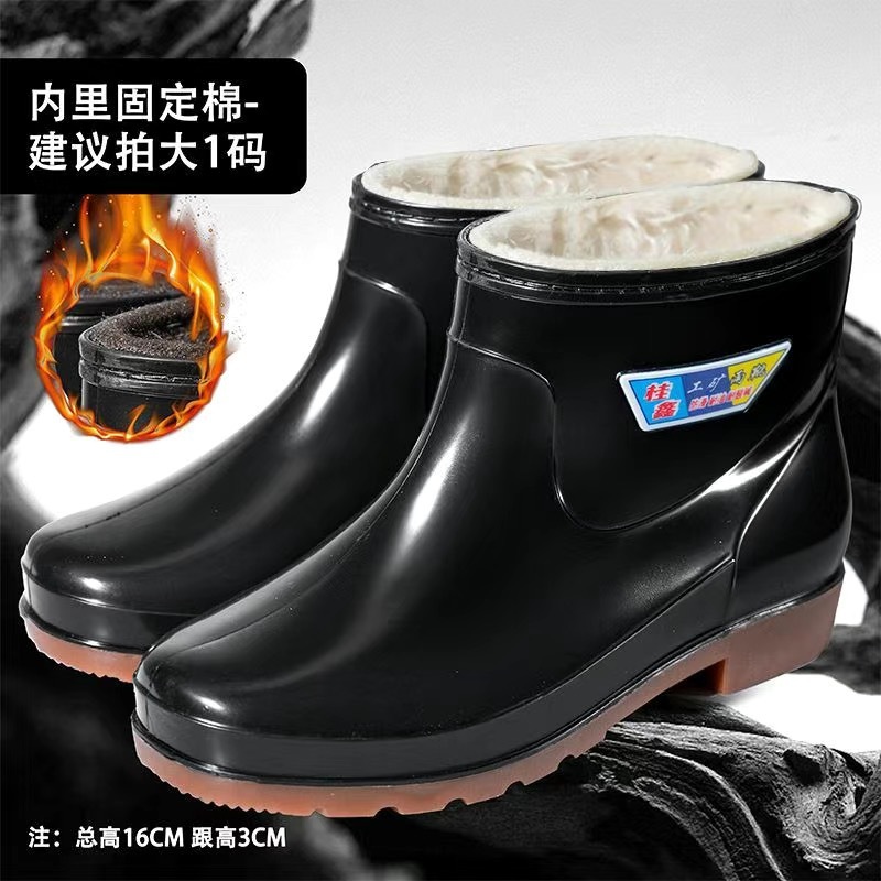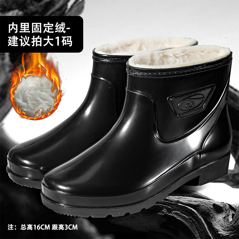 가을과 겨울 따뜻한 남자의 미끄럼 방지 물 신발 짧은 비 신발 기모 두꺼운 면 패션 비 부츠 세차 오버 슈즈
