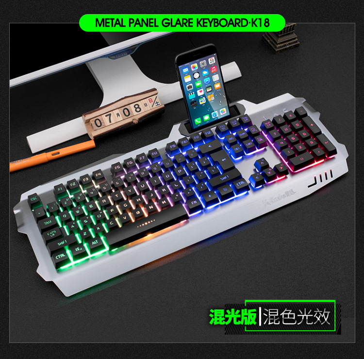 공장 직접 공급 바이퍼 k18 기계식 느낌 빛나는 금속 키보드 유선 먹기 치킨 cclol 게임스토어 가기