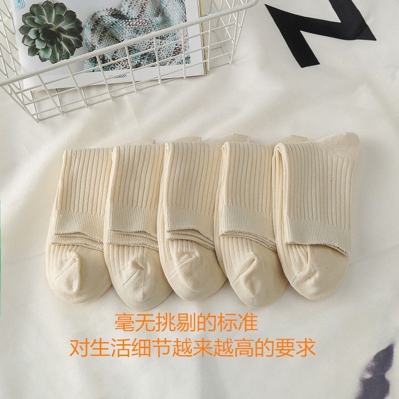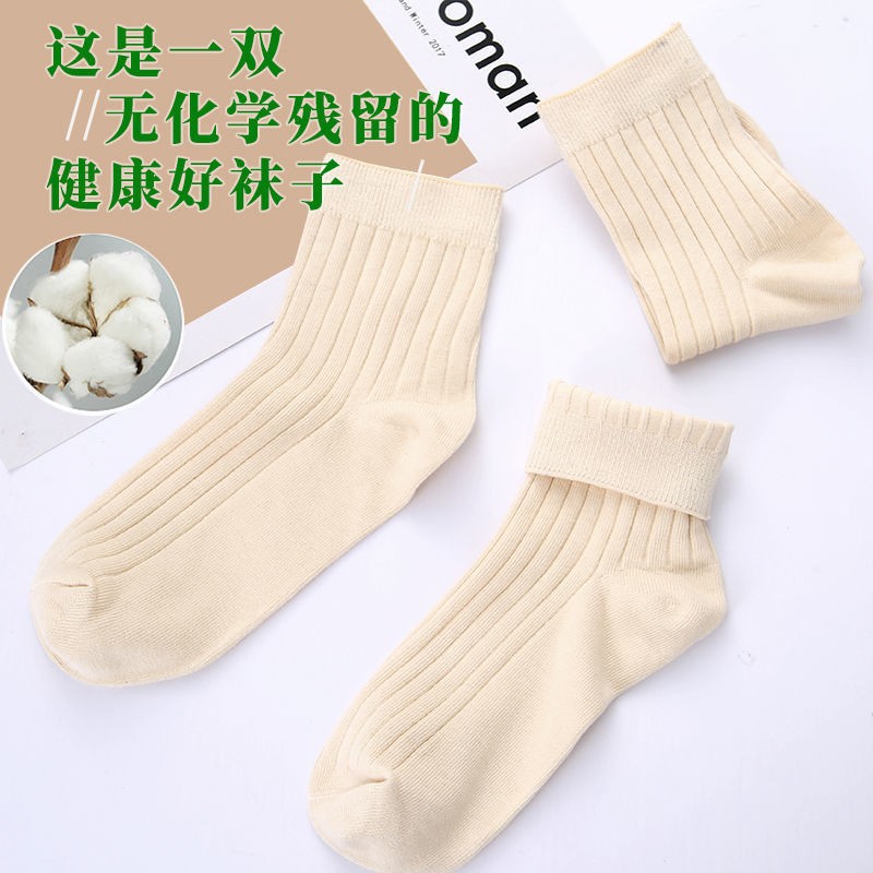 Haiyina 진짜 면화 남성과 여성을위한 염색되지 않은 단색면 양말 가을, 겨울 중반 송아지 양말 내부 및 외부 면화 냄새 나는 발 가을, 겨울 양말