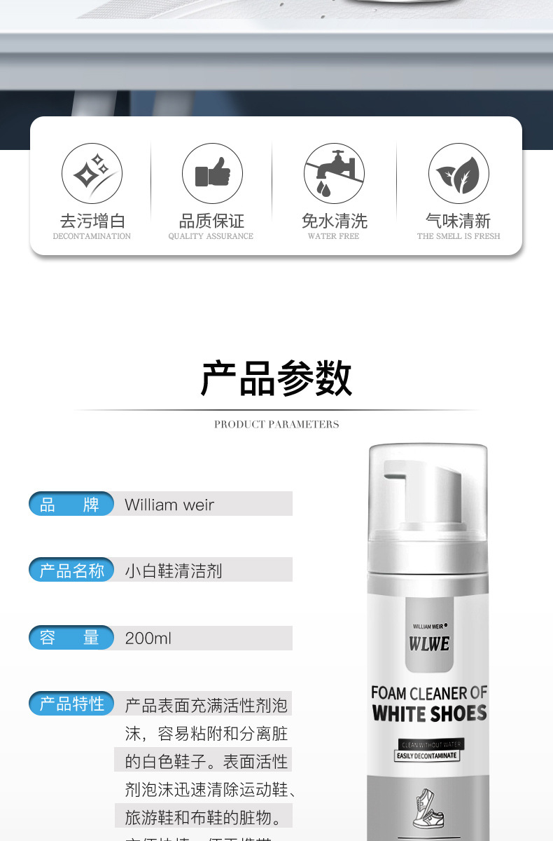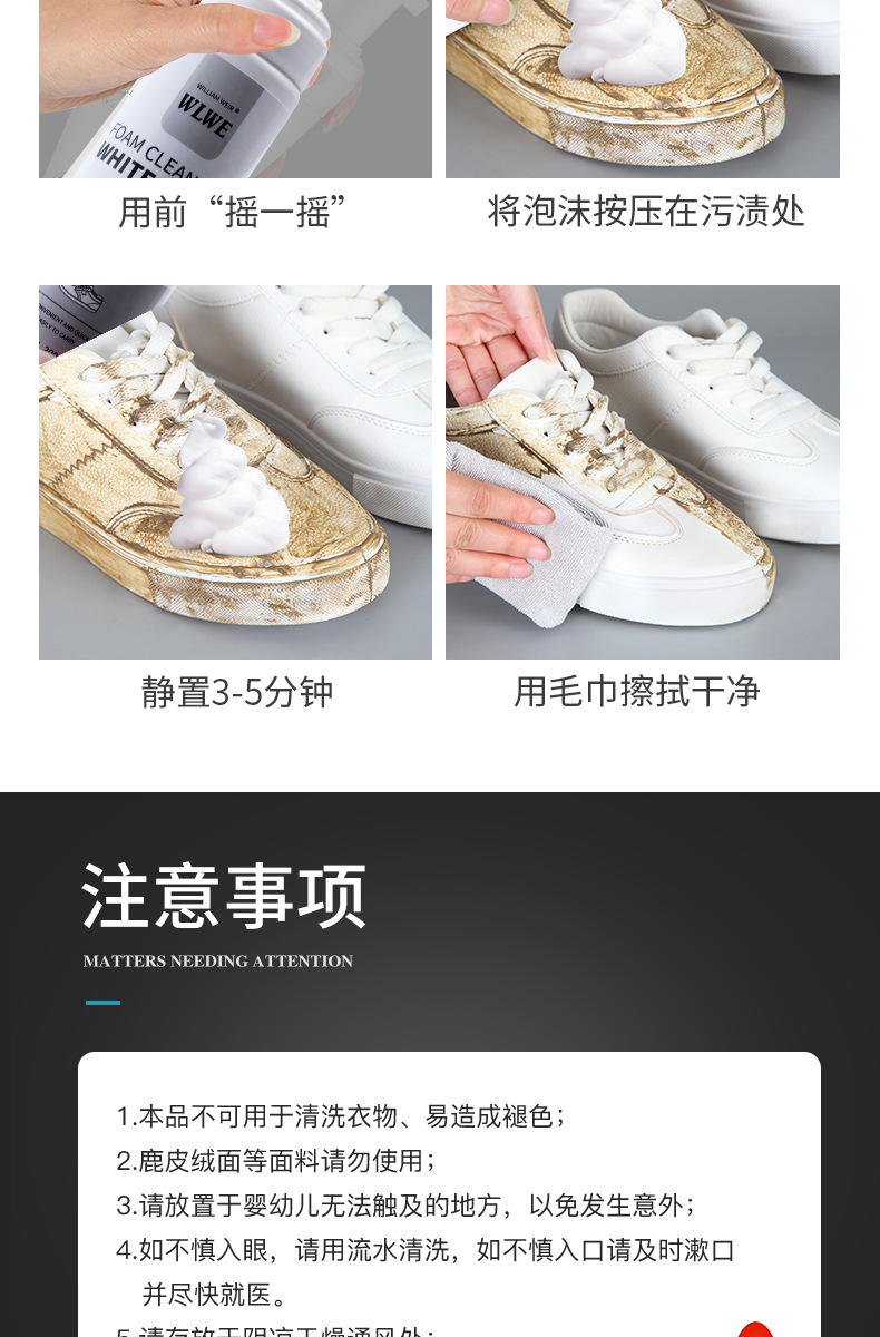 흰색 신발 청소 에이전트 휴대용 일회용 운동화 청소 에이전트 오염 제거 노란색 거품 드라이 클리닝 에이전트 재고 도매