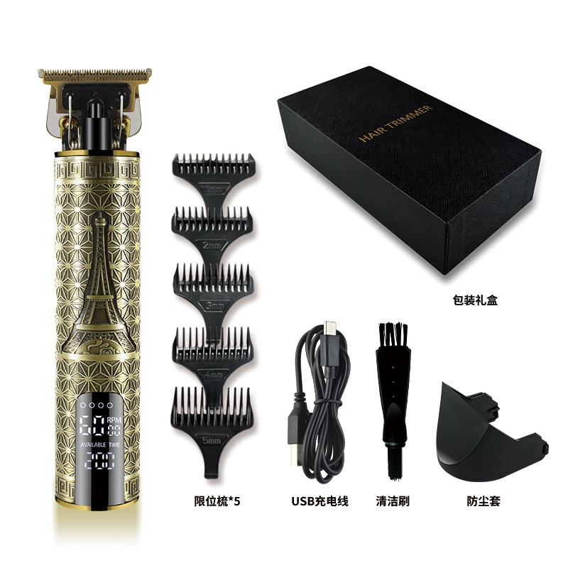 亚马逊新款液晶数显家用理发器复古油头电推剪充电修边推白电推子