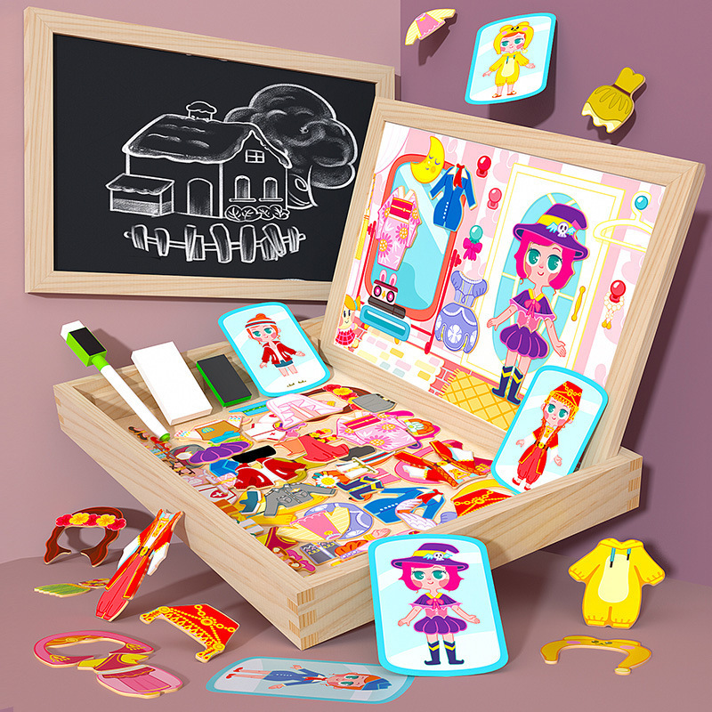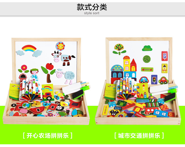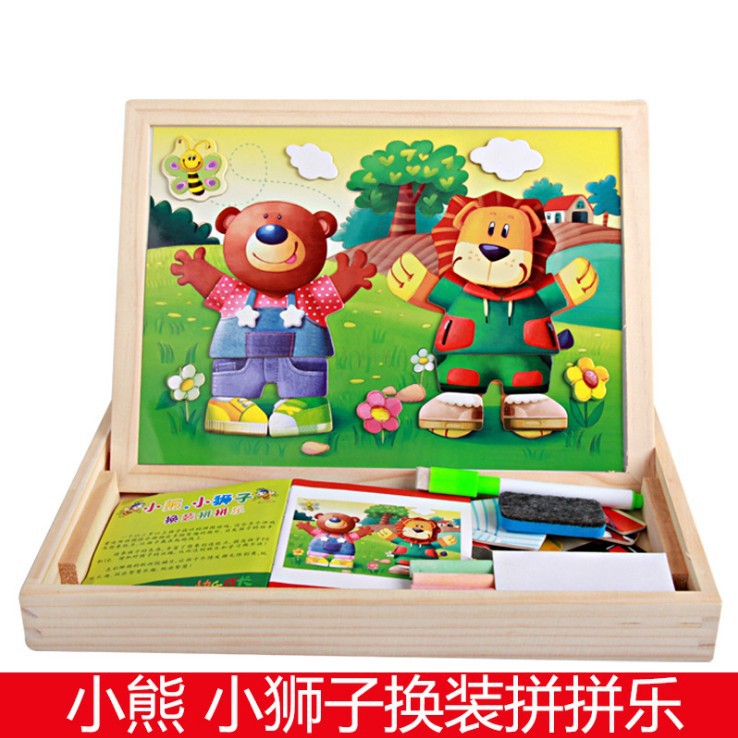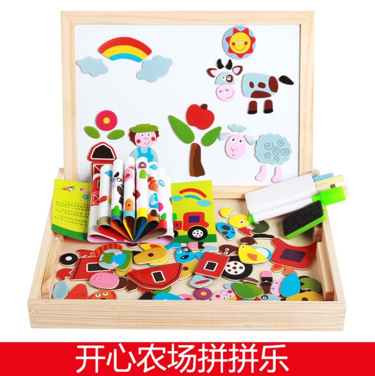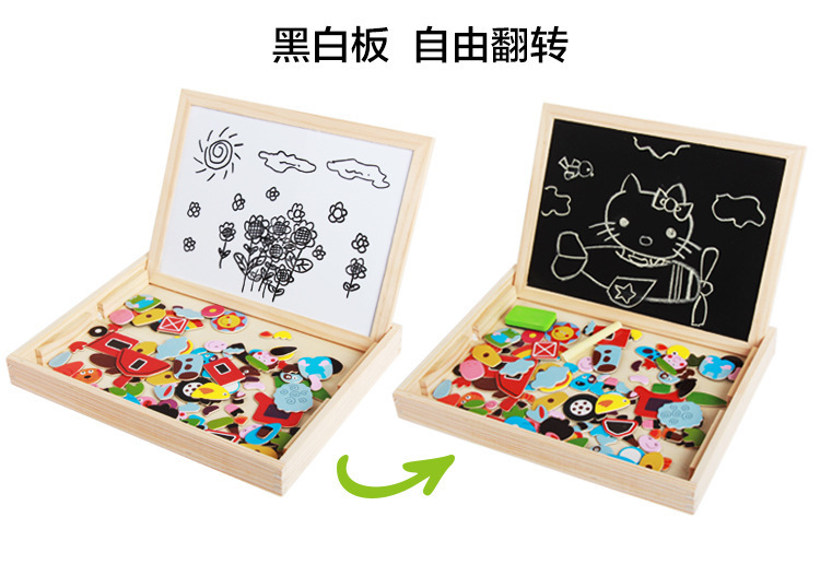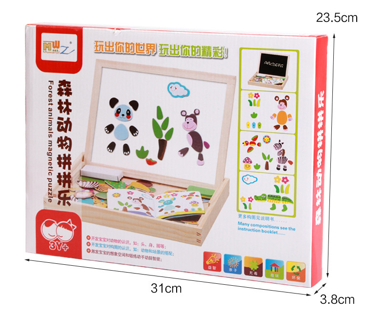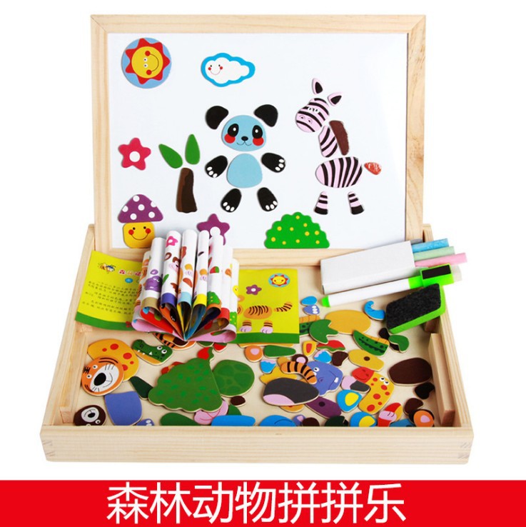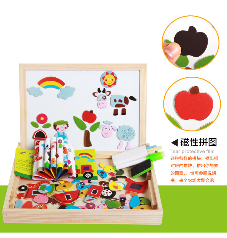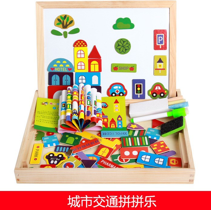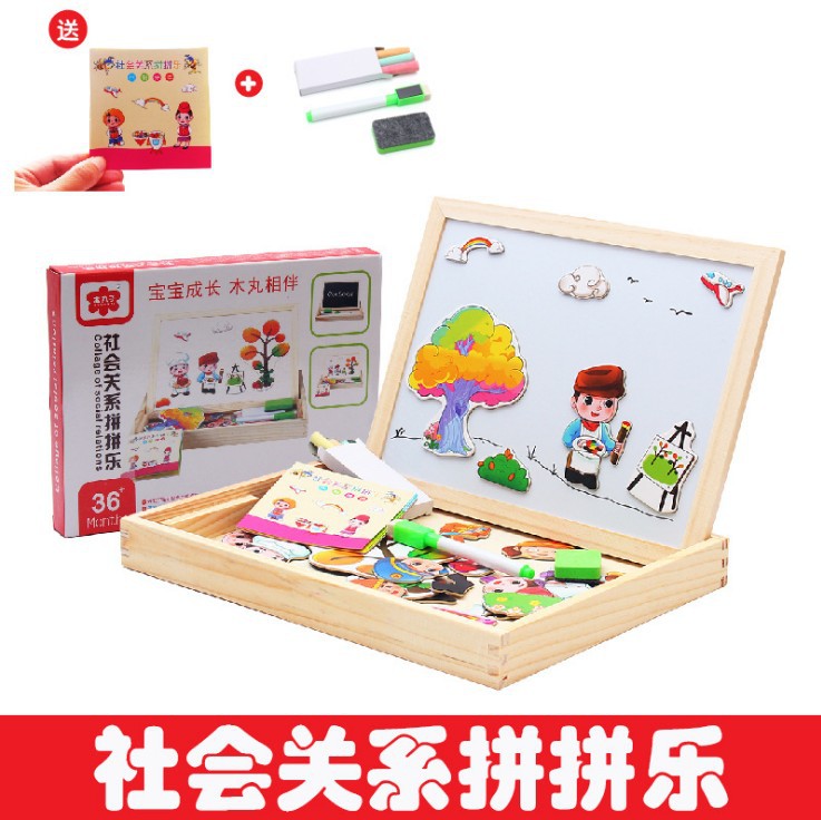 나무 유치원 자기 퍼즐 양면 직소 드로잉 보드 아기 어린이 조기 교육 혜택 지능 개발 장난감스토어 가기