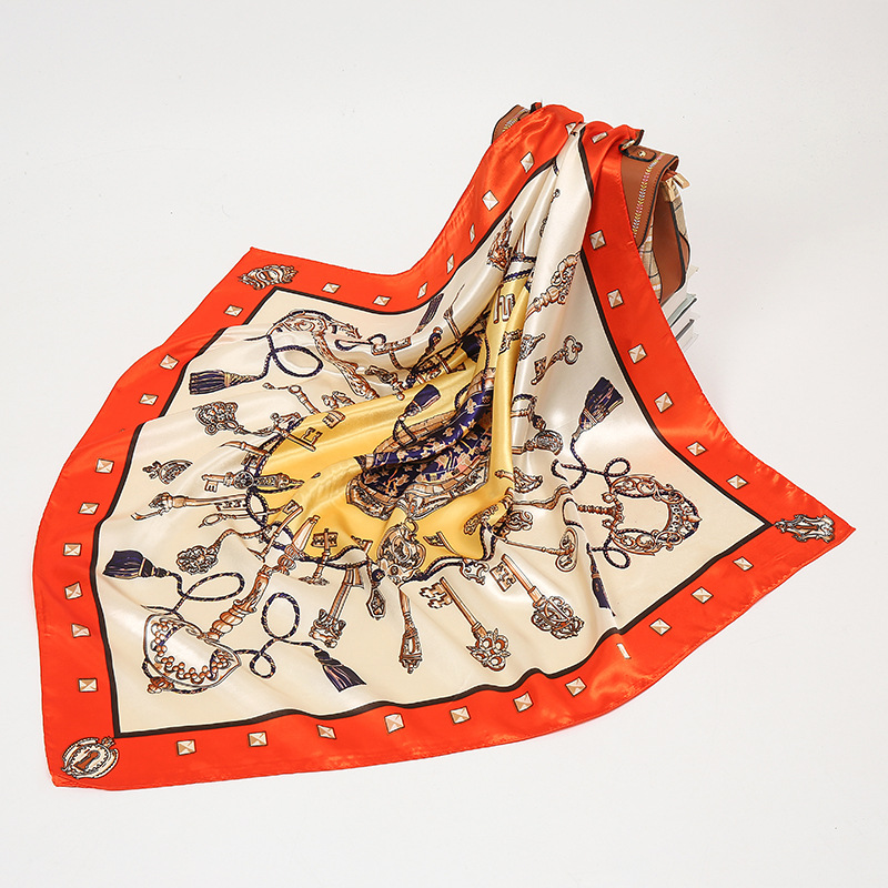 Gaohe 이른 봄 새로운 유럽과 미국의 바로크 금속 키 인쇄 스카프 여성의 큰 사각형 스카프 대외 무역