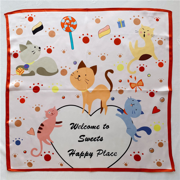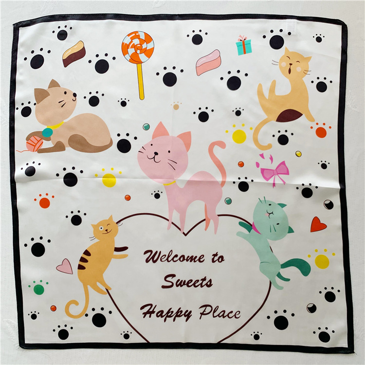 어린이 만화 실크 작은 사각형 스카프 봄 뽕나무 실크 작은 스카프 귀여운 소녀 크레이프 새틴 학생 스카프 도매