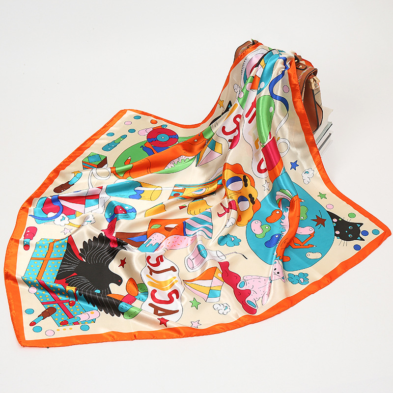 Gaohe 패션 서커스 놀이터 인쇄 실크 스카프 만화 재미 스카프 목도리 손 선물 재고