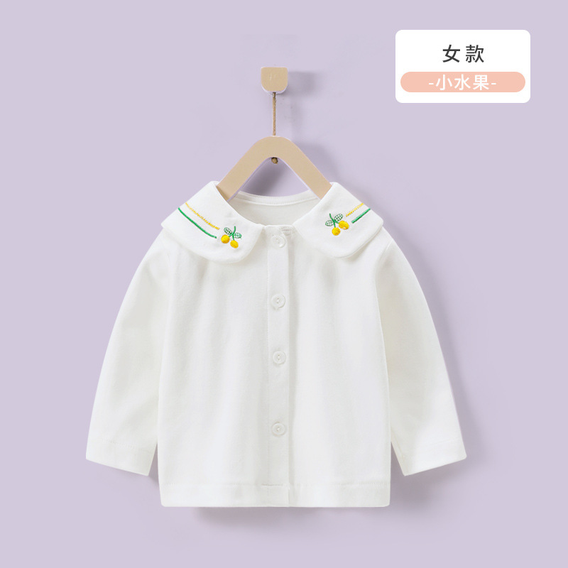 가을 소년 흰색 소녀 긴팔 탑 아기 한국 스타일 옷깃 셔츠 면화 가디건 어린이 한국 스타일 아동복스토어 가기