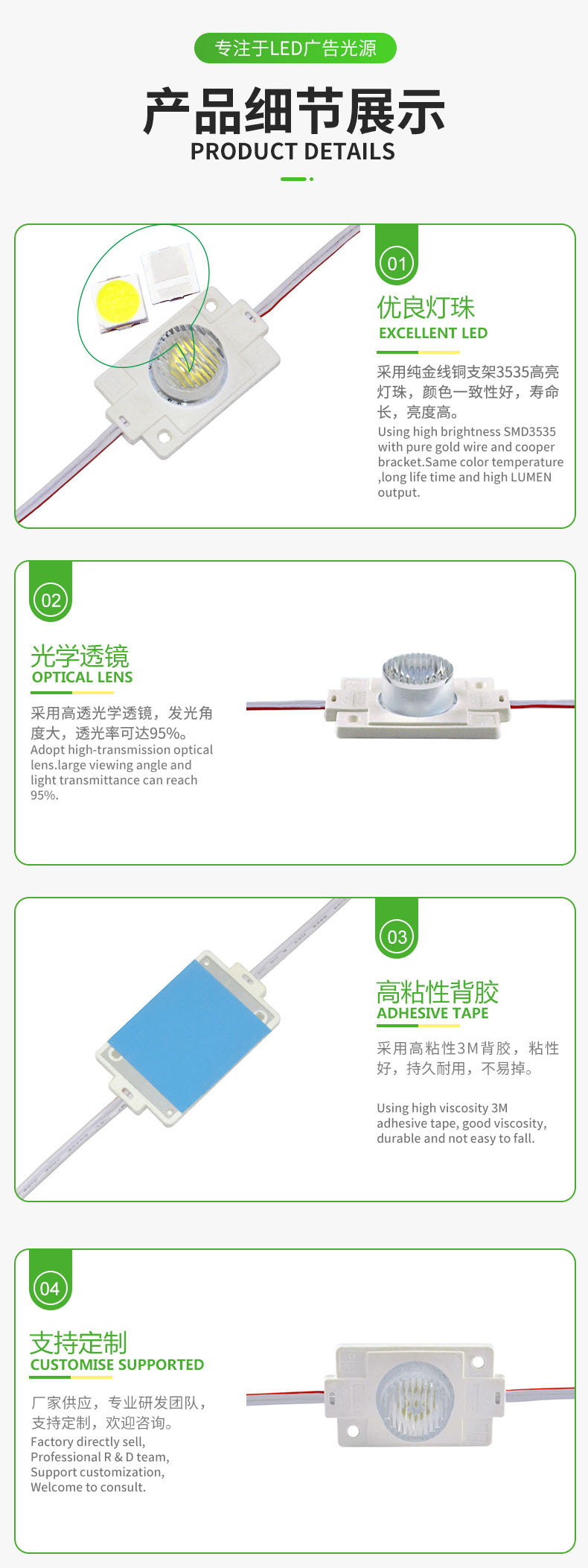 렌즈 양면 발광 라이트 박스 측면 조명 모듈이있는 하나의 조명 3535 모듈 LED 광원 모듈스토어 가기