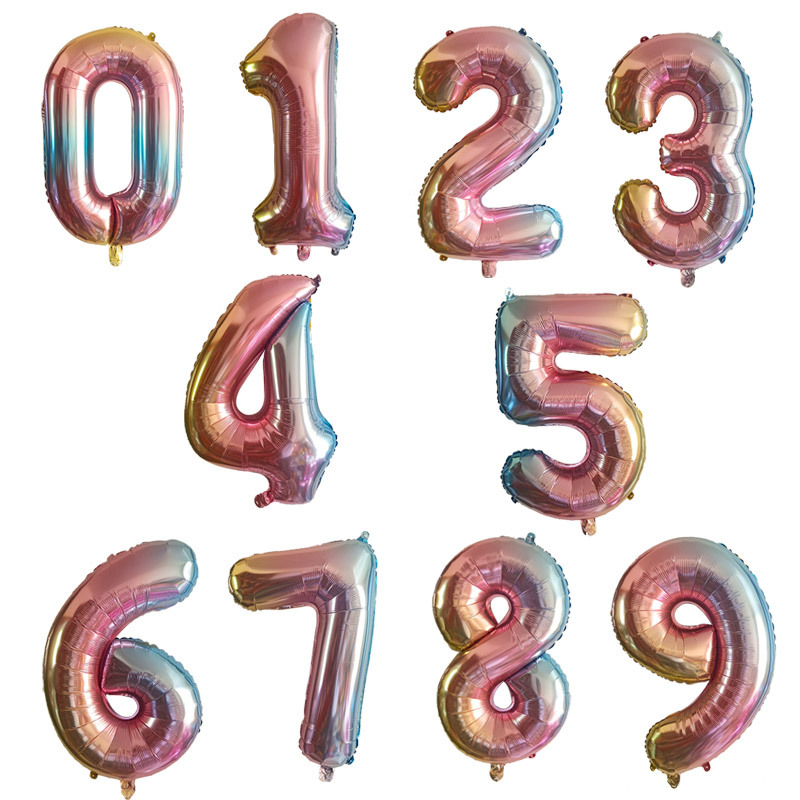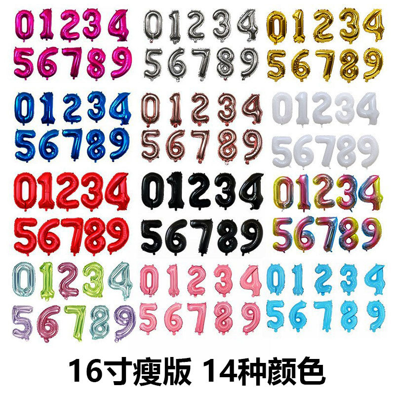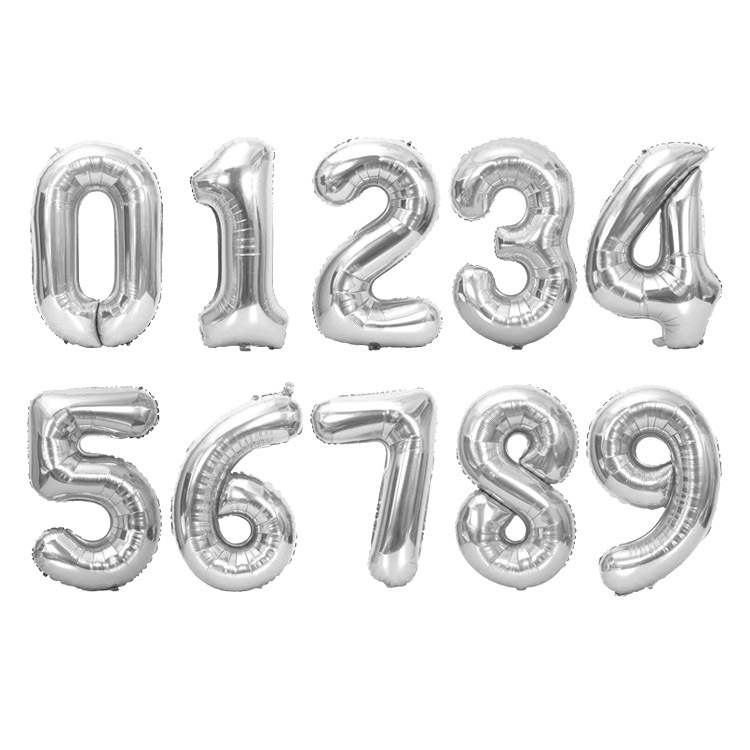 얇은 몸 0-9 디지털 금과 실버 알루미늄 필름의 16 인치 미국 버전 풍선 생일 파티 결혼식 장식 장면 풍선스토어 가기