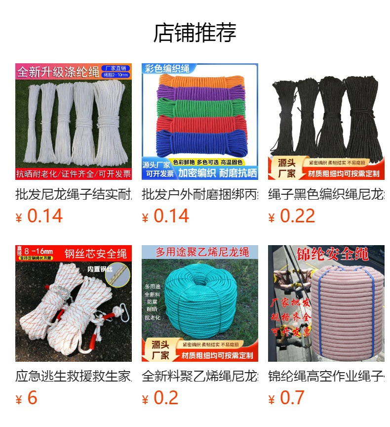나일론 로프 견고하고 내마모성이 뛰어난 흰색 땋은 트럭 번들 타포린 로프 폴리에스테르 폴리프로필렌 안전 로프스토어 가기