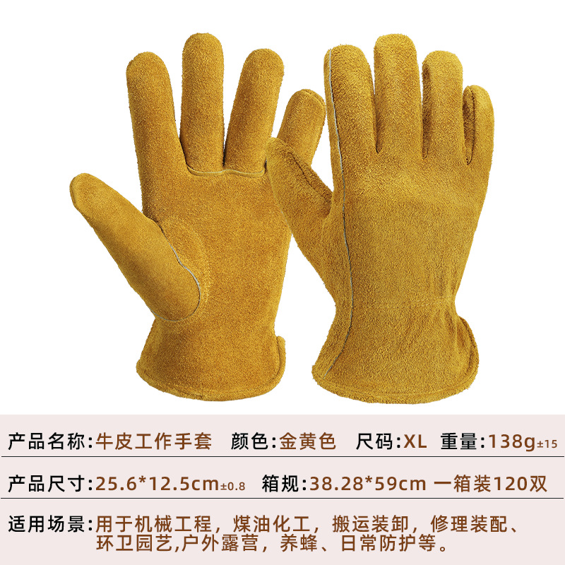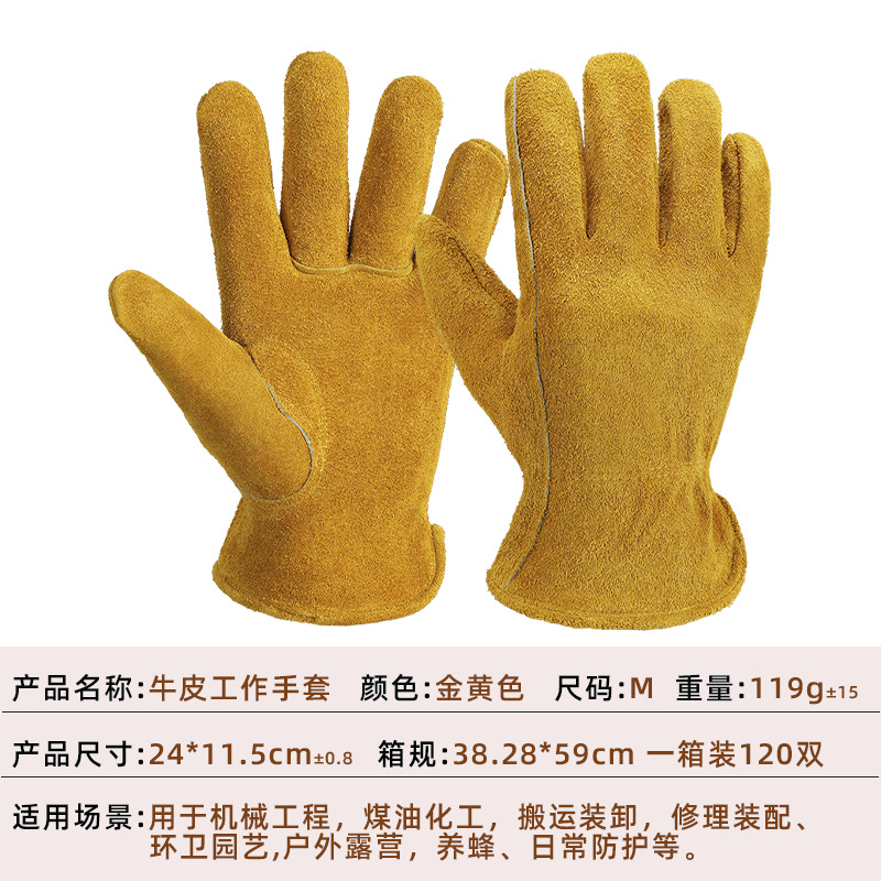 짧은 양봉 장갑, 소가죽, 튼튼하고 내마모성, 원예 및 펑크 방지 건설 현장 운송 트럭 운전 전기 기사 보호 장갑