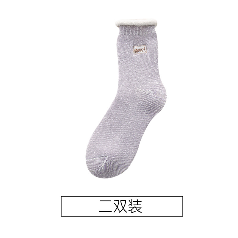 여성용 겨울 양말 2켤레, 보온성 강화 수면 양말, 스위트 레터 자수 스노우 양말, 추위 방지 겨울 인기 상품스토어 가기