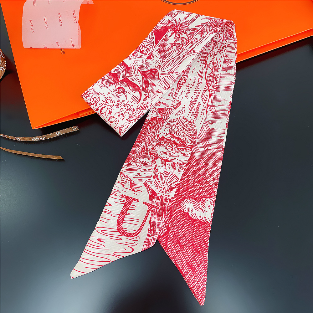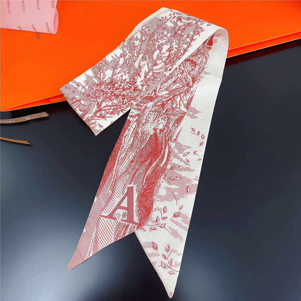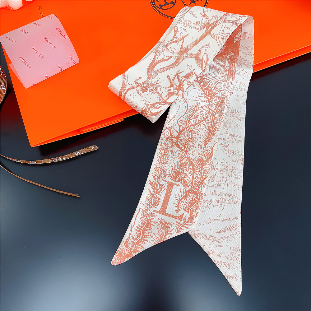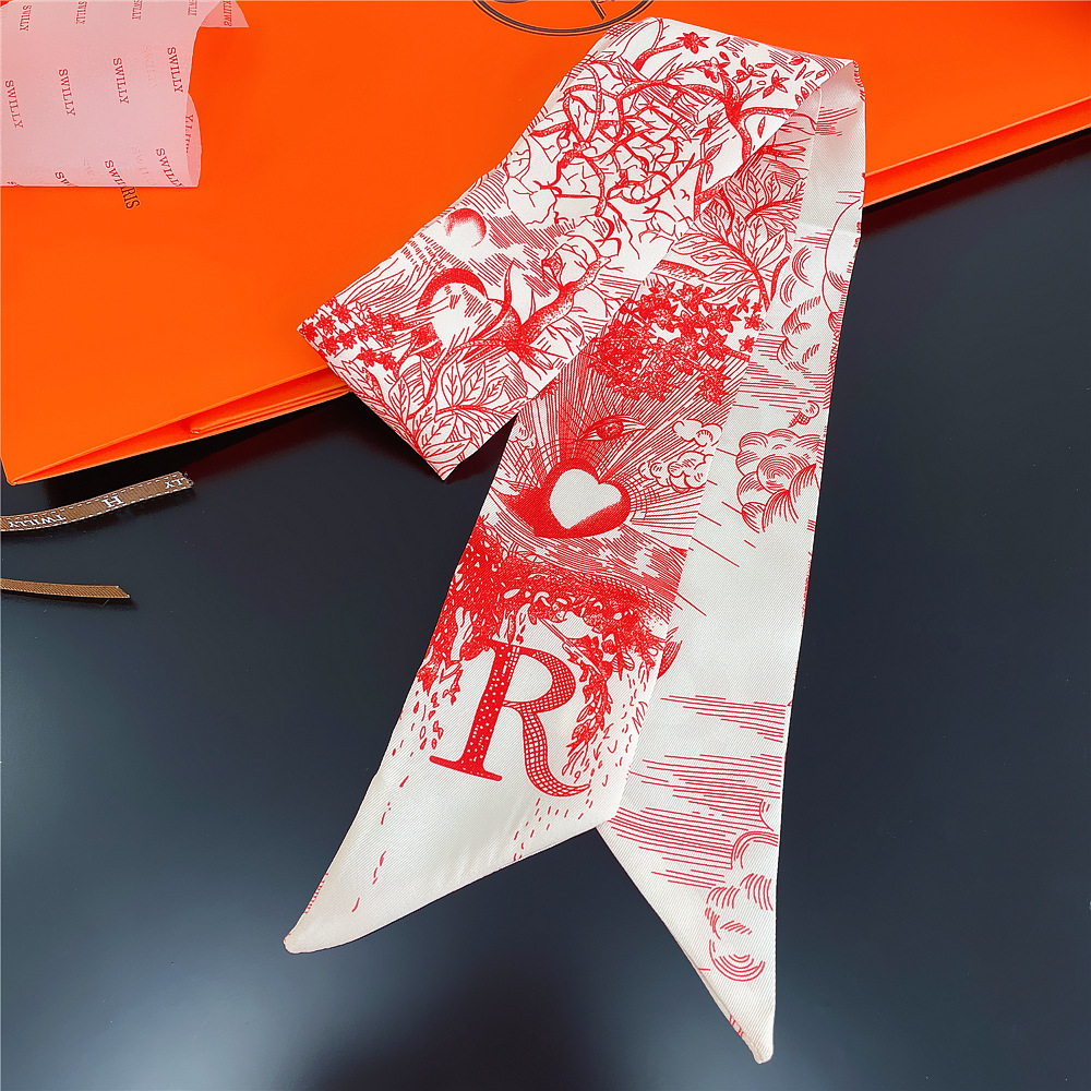 봄 2022 새로운 스타일 심플 스타일 26 편지 능직 스카프 핸들 타이 백 리본 작은 스카프 선물 스카프스토어 가기