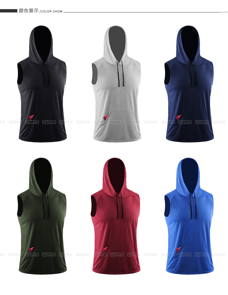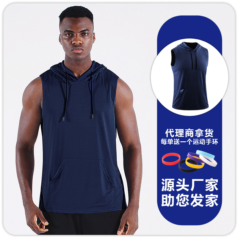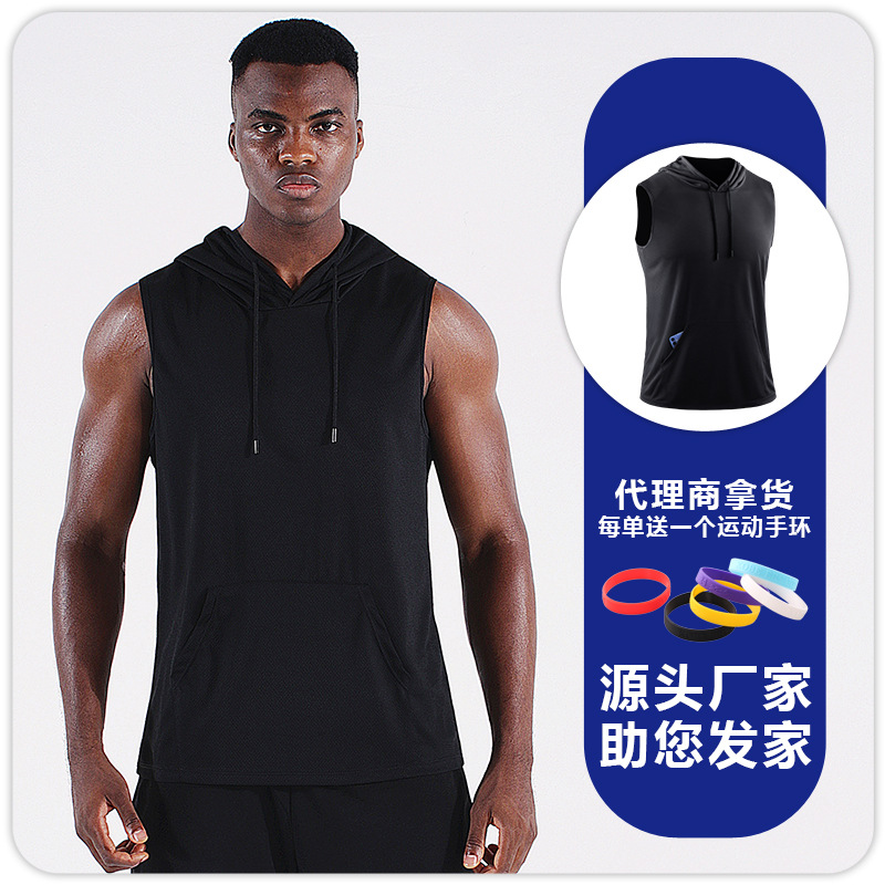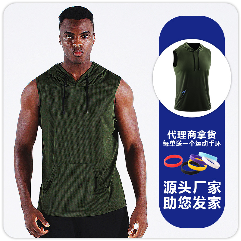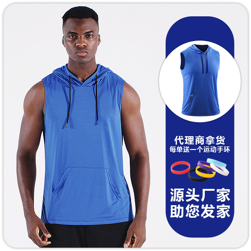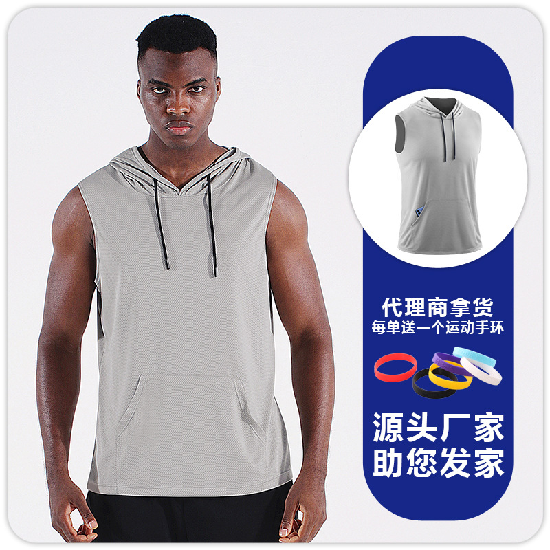 스포츠 야외 요가 조끼 속건 통기성 메쉬 후드 포켓 피트니스웨어 러닝 마라톤 민소매 상의